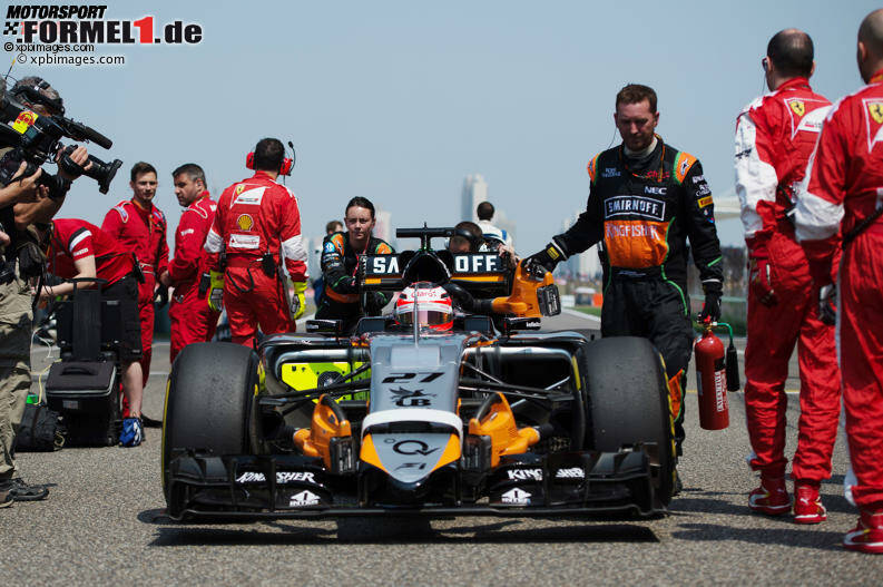 Beim Rennen in Schanghai erleidet Nico Hülkenberg Force Indias ersten Ausfall, während Sergio Perez sich an die Top 10 herantrickst