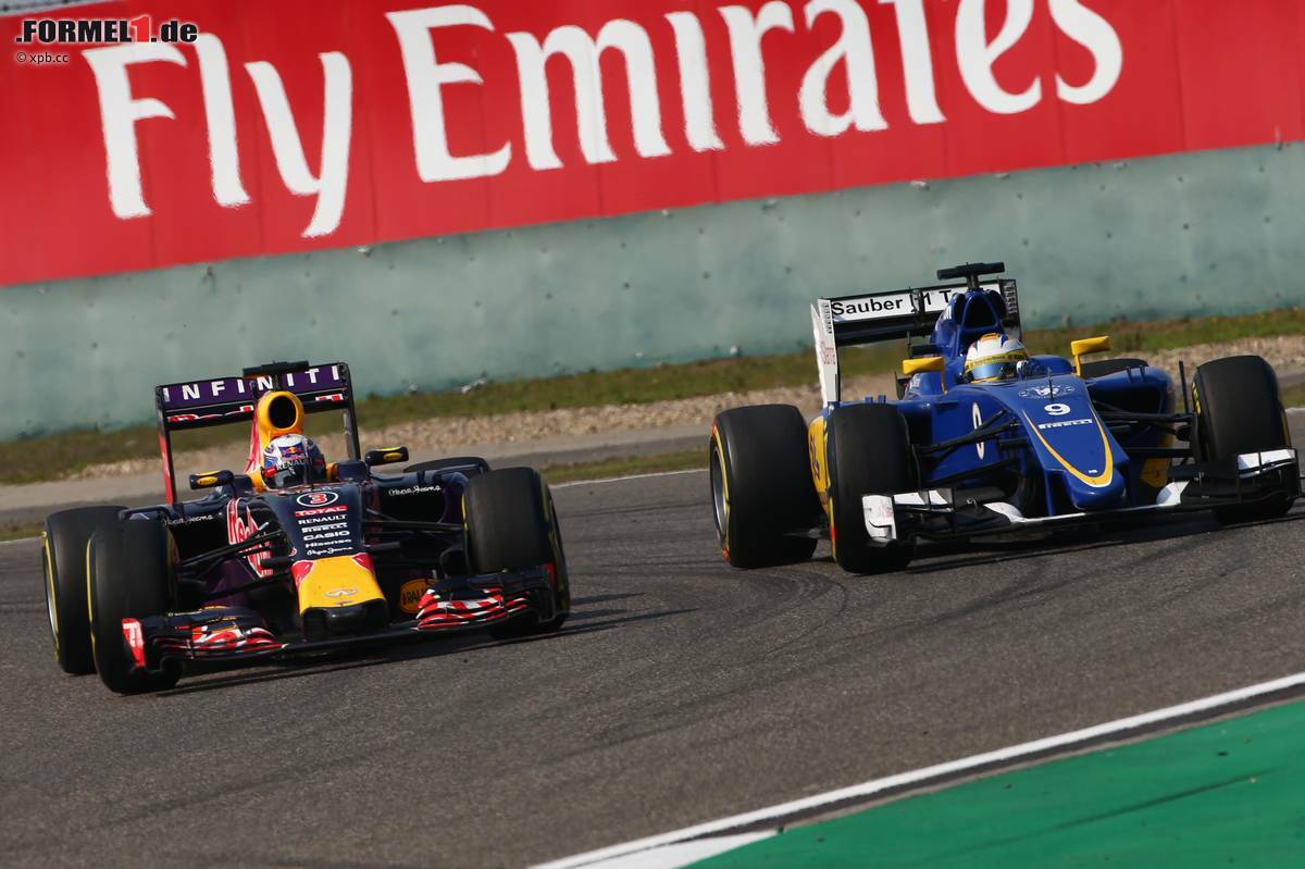 Sehenswertes Manöver: Ricciardo überholt Sauber-Fahrer Marcus Ericsson im Kampf um Position zehn. Am Ende wird daraus sogar noch der neunte Platz.