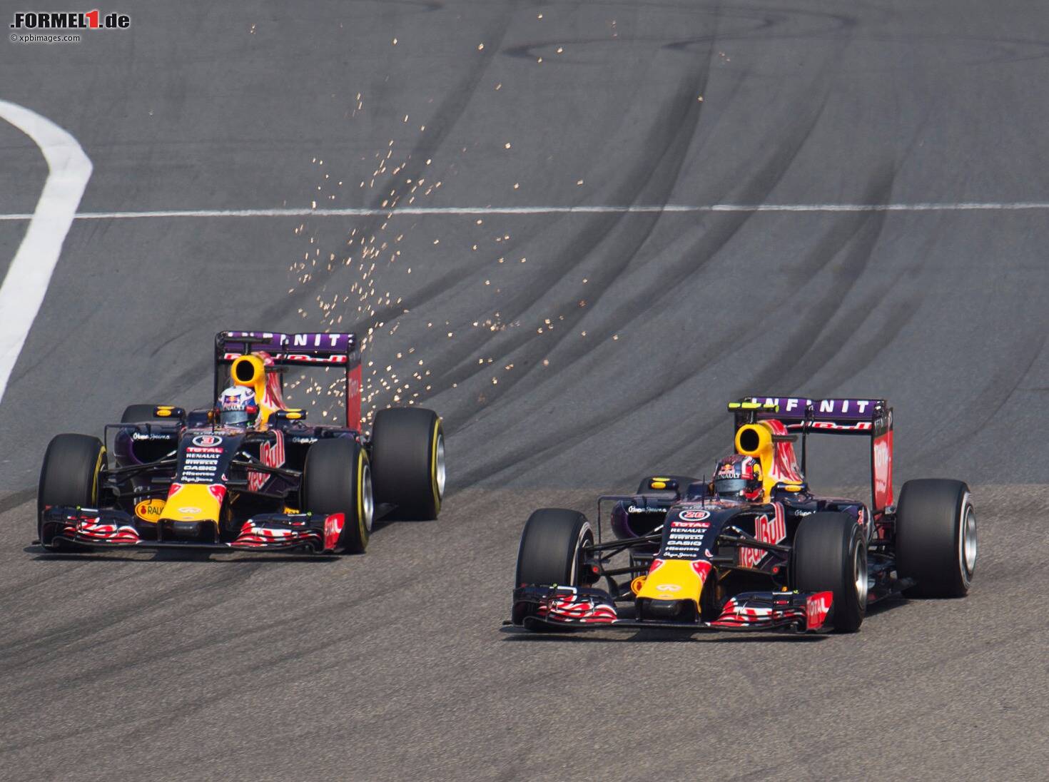 Gipfel des für Red Bull desaströsen Rennens war ein Teamduell der beiden Fahrer, welches für Unstimmigkeiten sorgte. In Runde 5 ereilte Kwjat ein Funkspruch vom Kommandostand, der ihn mehr oder weniger offen aufforderte, den hinter ihm fahrenden Teamkollegen vorbeizulassen. "Du hast Ricciardo hinter dir. Kämpfe nicht gegen ihn. Er ist auf einer anderen Strategie", teilte man dem Russen mit, der im Gegensatz zu seinem Teamkollegen auf Medium-Reifen ins Rennen gestartet war.