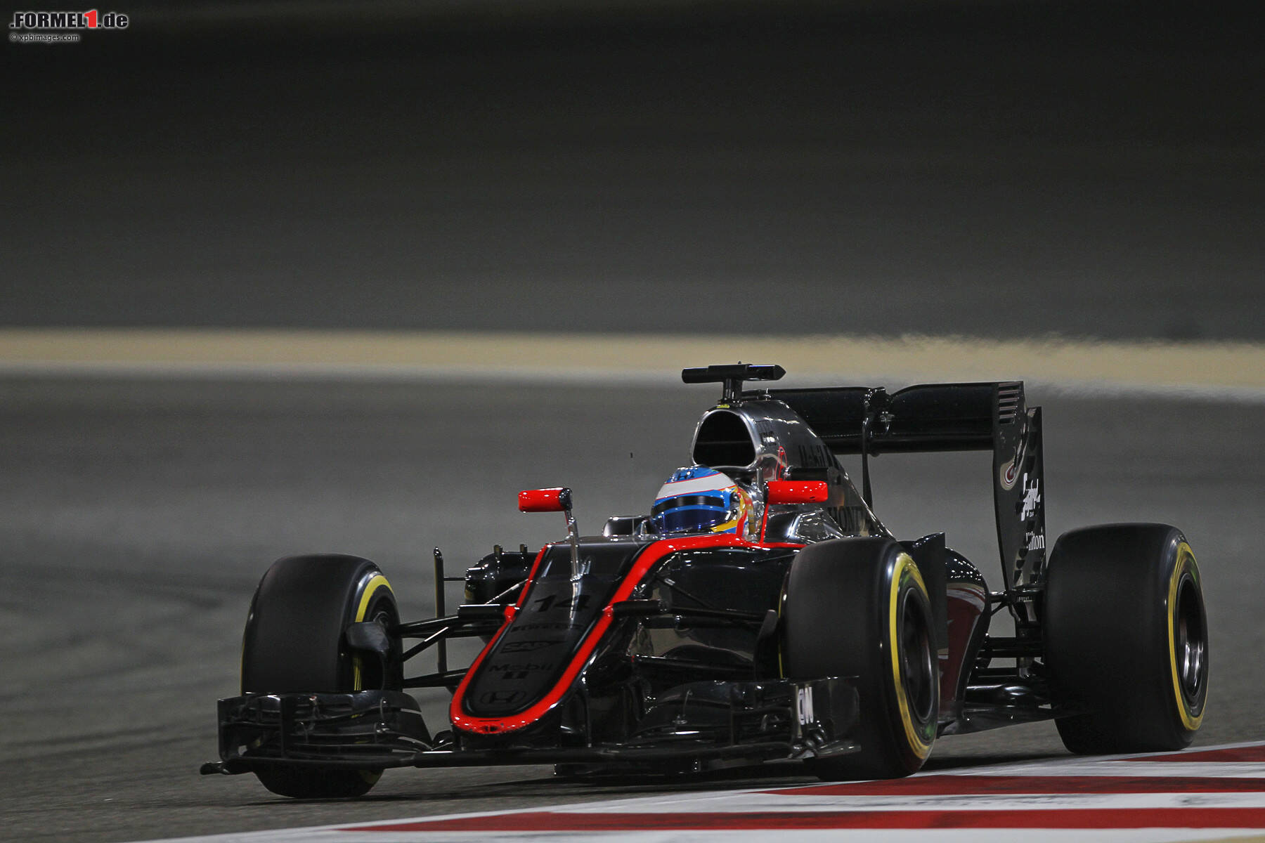 Fernando Alonso spult in den ersten beiden Trainings zum Grand Prix von Bahrain 2015 problemlose Runden ab, Jenson Button wird vom Antrieb ausgebremst