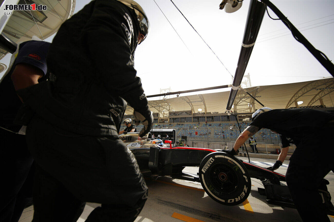 Fernando Alonso spult in den ersten beiden Trainings zum Grand Prix von Bahrain 2015 problemlose Runden ab, Jenson Button wird vom Antrieb ausgebremst