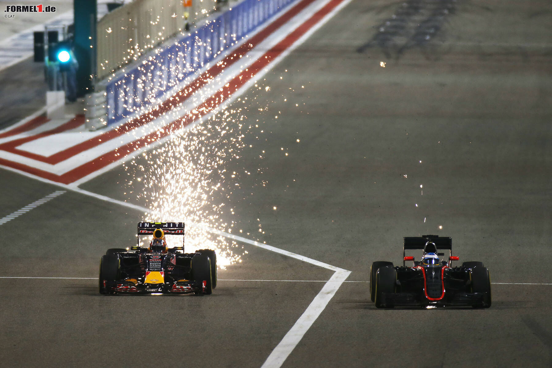 (Motorsport-Total.com) - In einem Rennen, in dem Red Bull keine großen Akzente setzen konnte, setzte das Team dennoch den großen Schlusspunkt. Denn während das Feuerwerk für Sieger Lewis Hamilton über dem Bahrain International Circuit abbrannte, veranstaltete Daniel Ricciardo beim Überfahren der Ziellinie sein eigenes Feuerwerk: Sein Renault-Motor gab spektakulär den Geist auf - zum Glück wenige Meter vor dem Zielstrich, sodass er noch über die Ziellinie rollen konnte.
