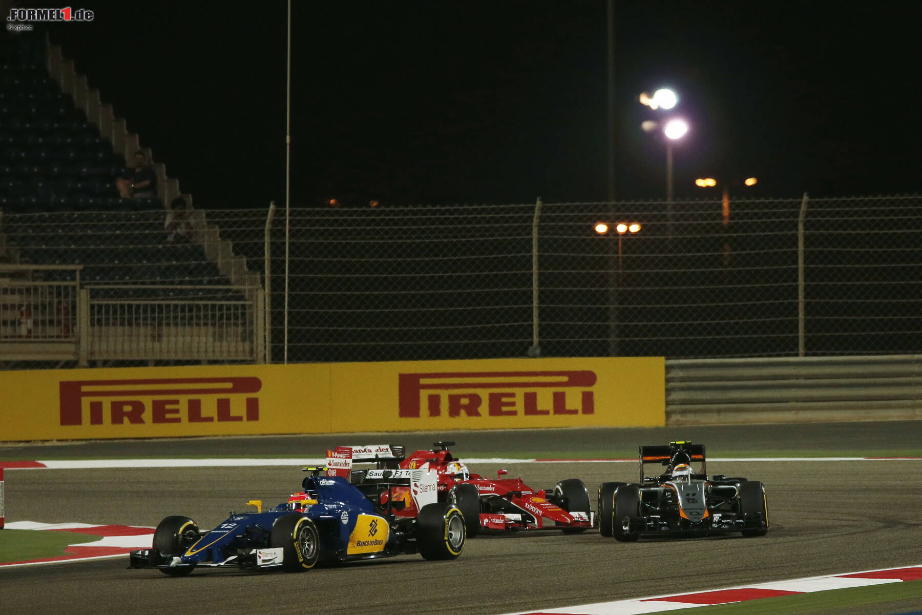 (Motorsport-Total.com) - Mit einer eindrucksvollen Vorstellung hat Lewis Hamilton beim vierten Rennen der Formel-1-Saison 2015 seinen dritten Sieg gefeiert. Der Mercedes-Pilot gewann den Grand Prix von Bahrain in Sachir (Manama) vor Kimi Räikkönen (Ferrari) und Nico Rosberg (Mercedes). Während Hamilton die nächsten 25 WM-Punkte souverän in trockene Tücher wickelte, ging es dahinter extrem spannend zu.