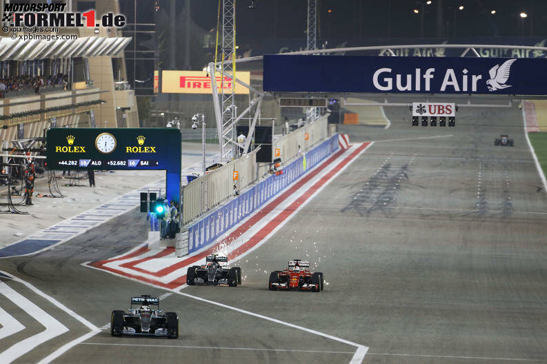 (Motorsport-Total.com) - Sebastian Vettel hat seine gute Startposition für den Grand Prix von Bahrain 2015 nicht in einen weiteren Podesterfolg umsetzen können. Der deutsche Ferrari-Pilot, der von Rang zwei in das Rennen gegangen war, kam am Ende ereignisreicher 57 Runden nur auf dem fünften Platz ins Ziel. Nach einem Schaden am Frontflügel hatte Vettel einen zusätzlichen Boxenstopp einlegen müssen, der Anschluss an die Spitzengruppe um die Mercedes-Piloten Lewis Hamilton und Nico Rosberg sowie Teamkollege Kimi Räikkönen war somit verloren.