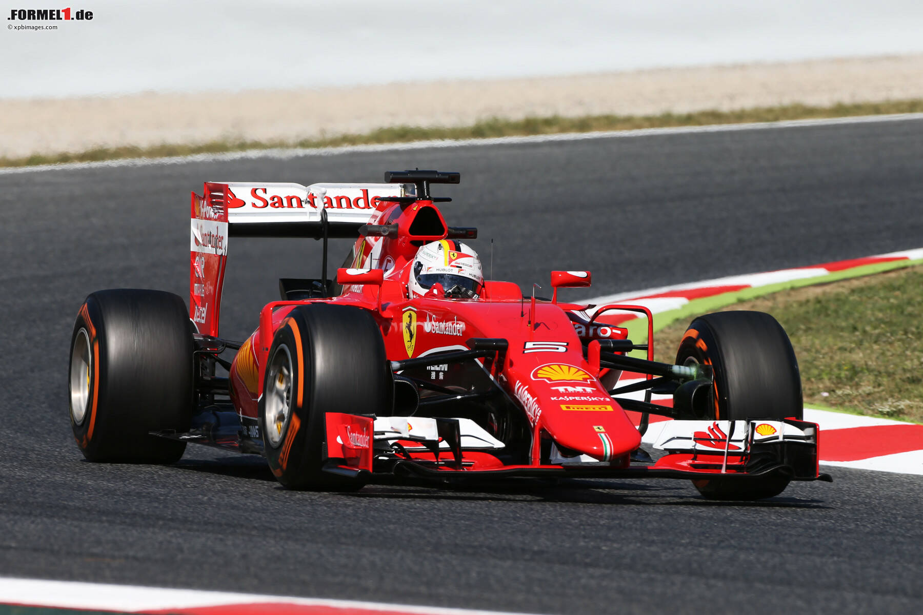 (Motorsport-Total.com) - Sebastian Vettel schloss den ersten Trainingstag zum Grand Prix von Spanien in Barcelona auf Platz drei ab. Nachdem der Ferrari-Pilot im Vormittagstraining mit 0,978 Sekunden Rückstand auf Mercedes-Pilot Nico Rosberg Platz drei belegt hatte, verkürzte er am Nachmittag seinen Rückstand.