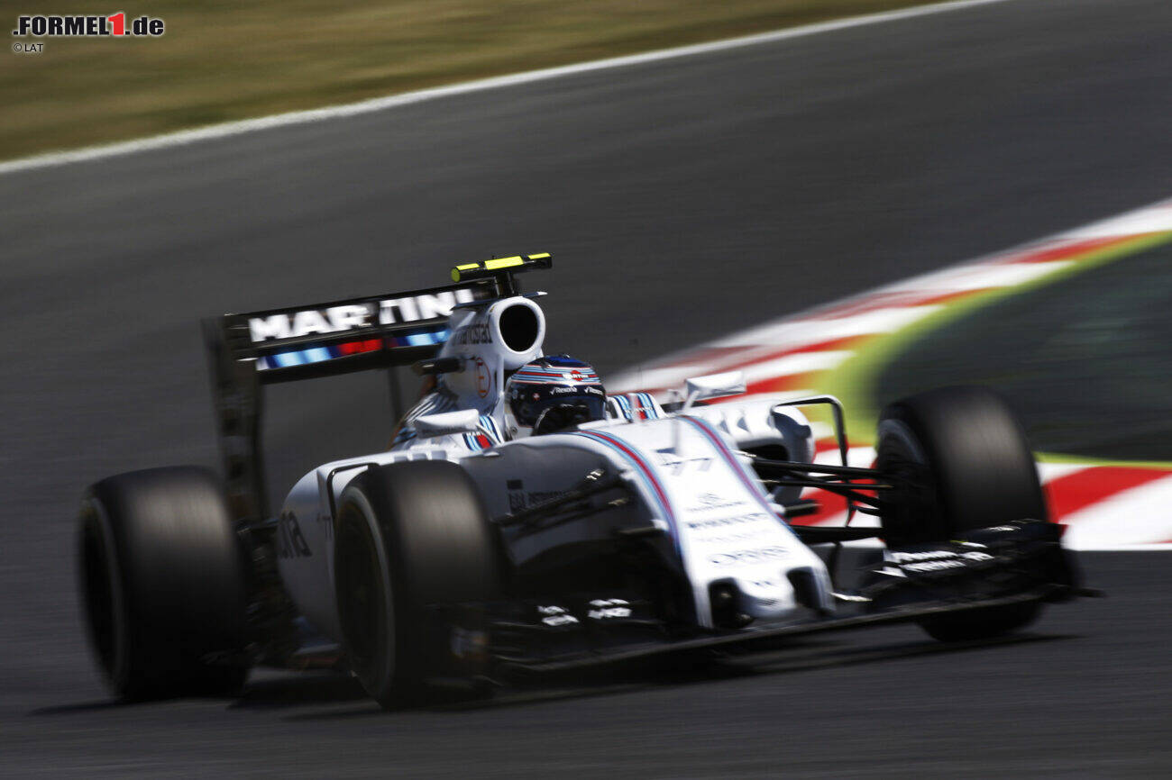 (Motorsport-Total.com) - Valtteri Bottas (Williams) hinterließ im Qualifying der Formel 1 zum Grand Prix von Spanien in Barcelona am Samstag wieder einmal einen bärenstarken Eindruck. Der Finne steigerte sich im zweiten Versuch des dritten Abschnitts auf eine Zeit von 1:25.694 Minuten und qualifizierte sich damit für Startplatz vier. Damit ließ er nicht nur seinen Teamkollegen Felipe Massa auf Platz neun um mehr als eine Sekunde hinter sich, sondern startet im Rennen am Sonntag drei Positionen vor Ferrari-Pilot Kimi Räikkönen.