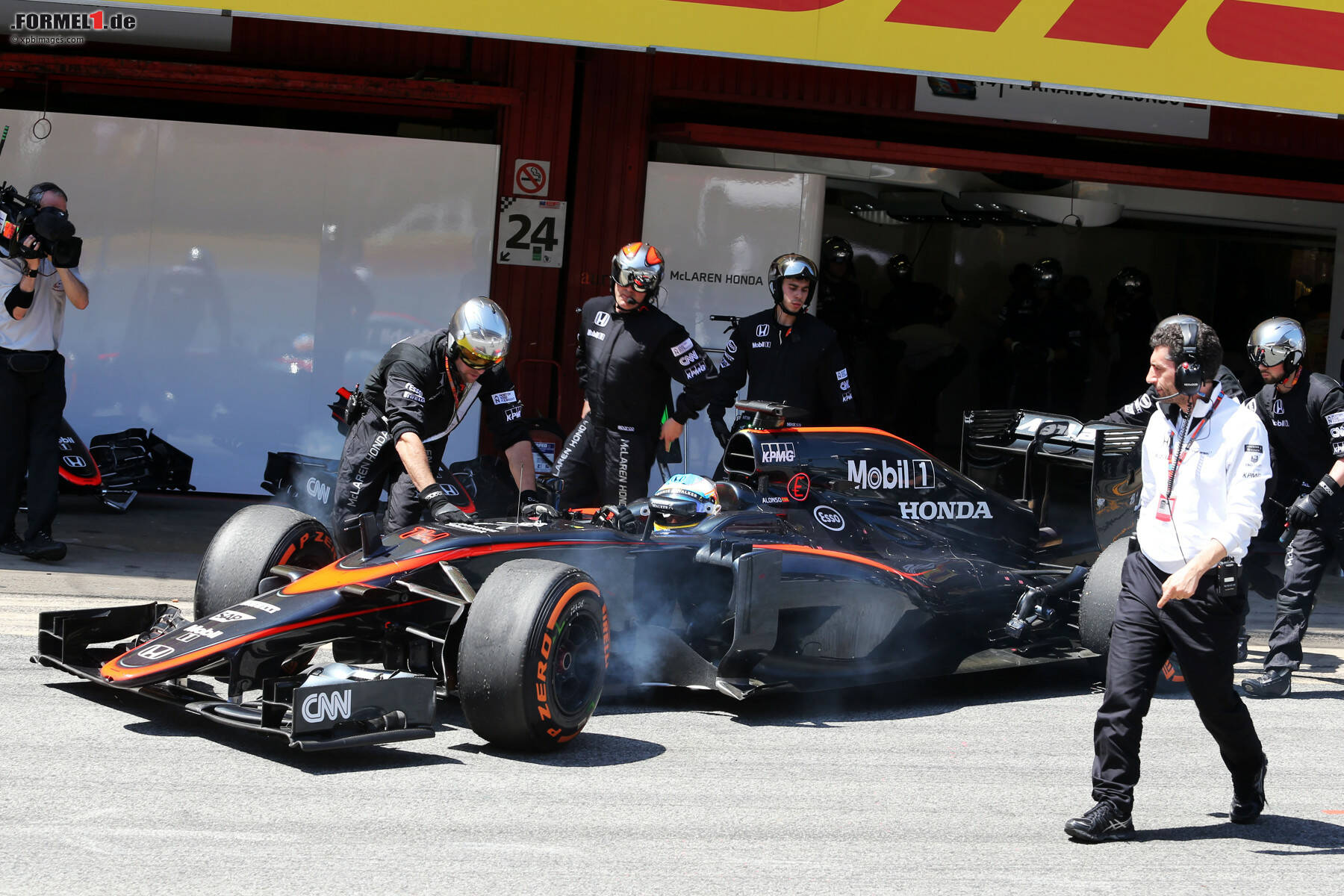(Motorsport-Total.com) - Fernando Alonso hatte sich seinen Heim-Grand-Prix sicherlich anders vorgestellt. Statt seine Fans auf den Tribünen mit einem guten Rennen zu erfreuen, musste er seinen McLaren mit einem Bremsproblem vorzeitig abstellen. Bei der Fahrt in die Boxengasse nahm er dabei sogar seine Crew fast aufs Korn, weil er über seine Haltemarke hinausschoss.