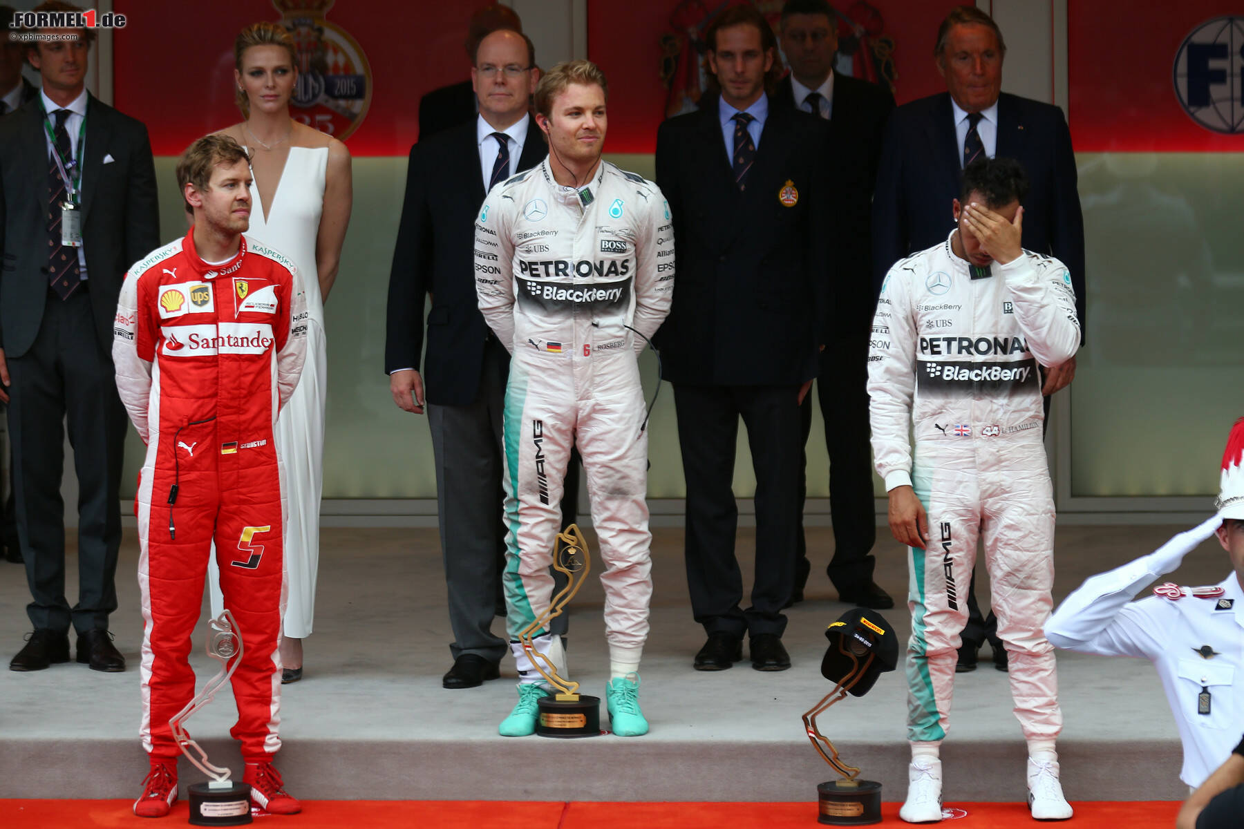 Ausgerechnet sein Mercedes-Teamkollege Nico Rosberg staubte den Sieg ab, auch Sebastian Vettel im Ferrari rutschte noch durch und sah vor Hamilton die Zielflagge beim sechsten Rennen der Formel-1-Saison 2015. Die Konsequenz daraus? Hamilton: "Ich bin mir sicher, wir setzen uns hin und klären, was wir besser machen können. Aber ich komme wieder und versuche, nächstes Mal zu gewinnen."