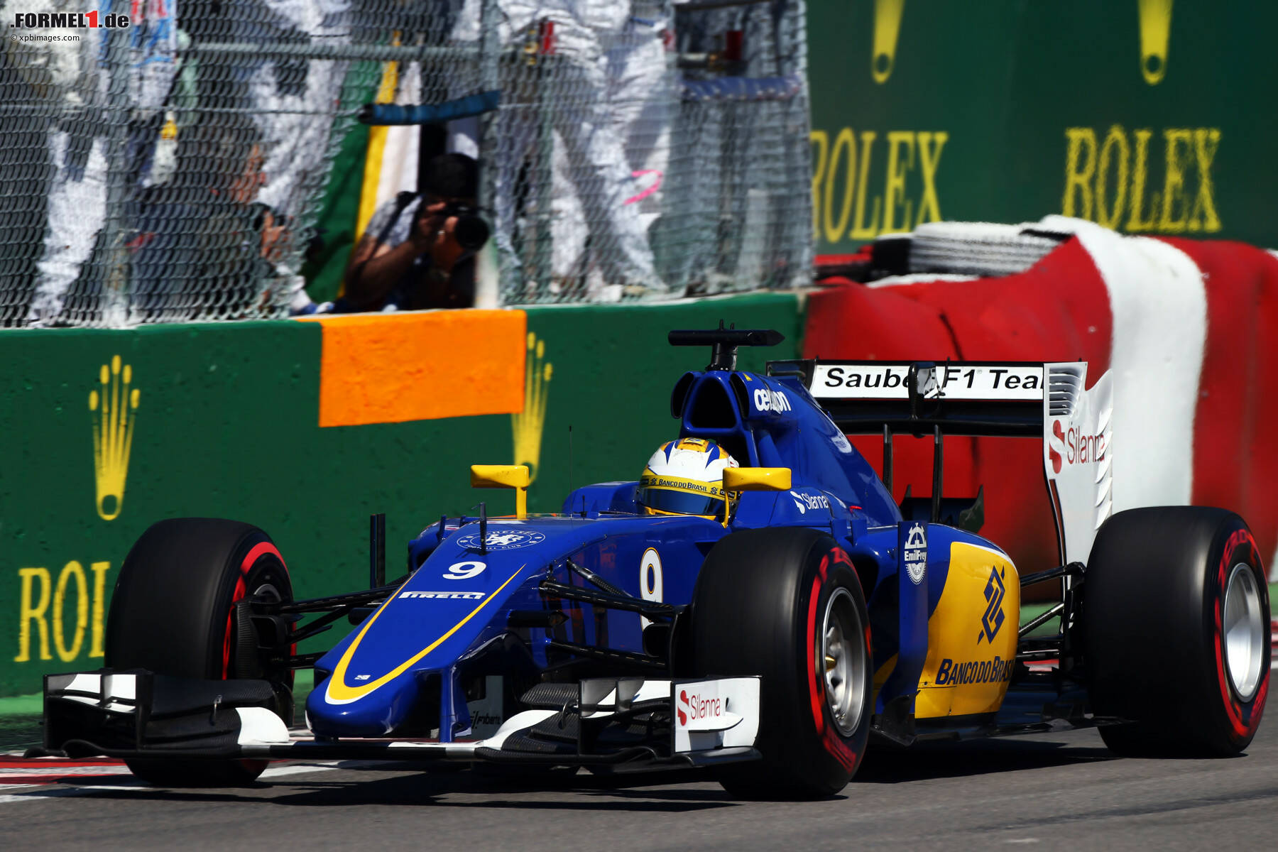 (Motorsport-Total.com) - Dass Sauber beim Qualifying zum Grand Prix von Kanada mit beiden Autos angreifen konnte, ist schon an sich ein kleiner Erfolg gewesen. Denn nach dem heftigen Einschlag von Felipe Nasr im dritten Freien Training war es eine Meisterleistung der Mechaniker, seinen Boliden rechtzeitig wieder hinzubekommen. Der peinliche Vorfall scheint den Brasilianer dennoch beeinflusst zu haben. Nasr konnte sich nur als 15. qualifizieren, während Marcus Ericsson am Samstag auf Rang 13. landete. Beide Piloten rücken durch Verstappens Strafversetzung in der Startaufstellung einen Platz vor.