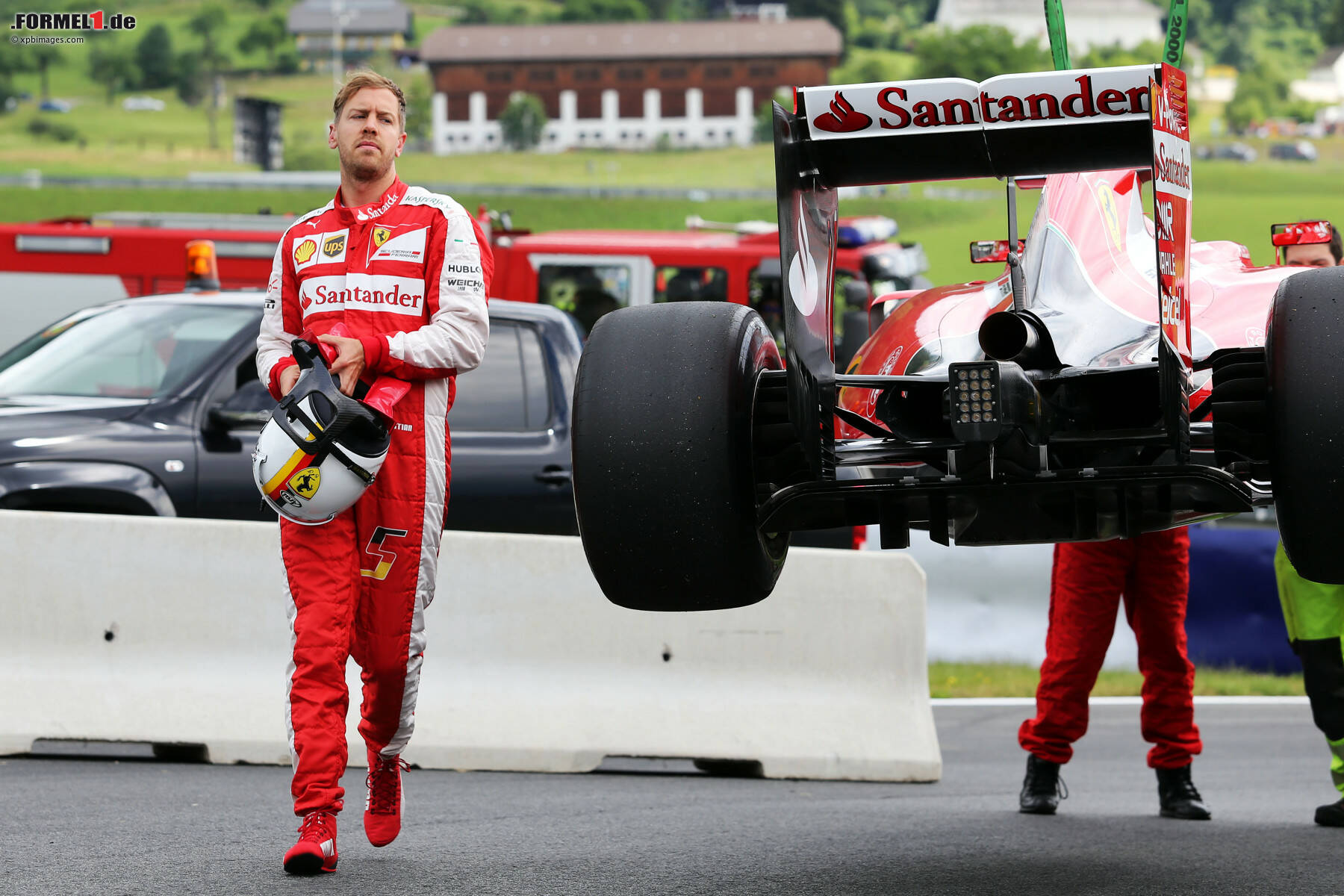 "Wir schauen uns das jetzt genau an, wissen aber noch nicht genau, was das Problem war", sagt Vettel unmittelbar nach dem Training. "Es scheint aber keinen Zusammenhang mit heute Vormittag zu geben." Diese Einschätzung bestätigte auch Motorenchef Mattia Binotto. Durch die beiden Defekte verlor Vettel viel wertvolle Trainingszeit. So fuhr er in den drei Trainingsstunden insgesamt nur 32 Runden. Zum Vergleich: Nico Rosberg (Mercedes), der mit einem Rückstand von elf Tausendstelsekunden hinter Vettel Rang zwei belegte, umrundete den Red-Bull-Ring am Freitag 86 Mal.
