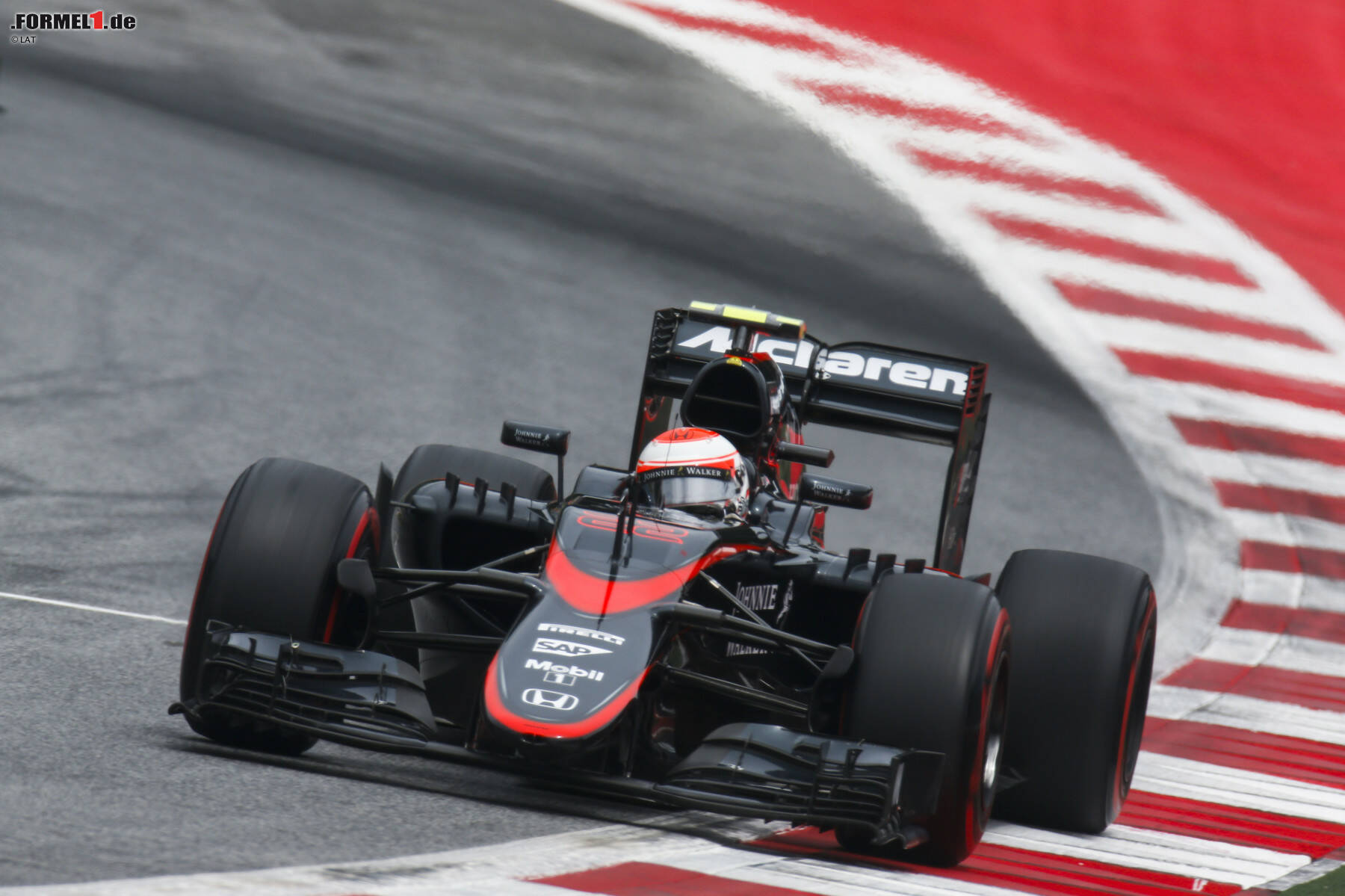 (Motorsport-Total.com) - Jenson Button hatte nach dem Qualifying zum Formel-1-Grand-Prix von Österreich die Nase gestrichen voll. Wie schon in Kanada erwischt es den Routinier mit einer saftigen Grid-Strafe und wie bei McLaren-Honda-Teamkollege Fernando Alonso soll es um 25 Plätze in der Startaufstellung zurückgehen. An beiden McLarens mussten Teile von Motoren, Getriebe oder Turbolader gewechselt werden. Nach Trainingsplatz 17 ist es natürlich unmöglich, dass Button auf Startplatz 42 losfährt. Der McLaren-Pilot wird mit einer Zeitstrafe belegt, die der 10-Sekunden-Strafe gleichkommt, welche eher in den 1990ern üblich war.