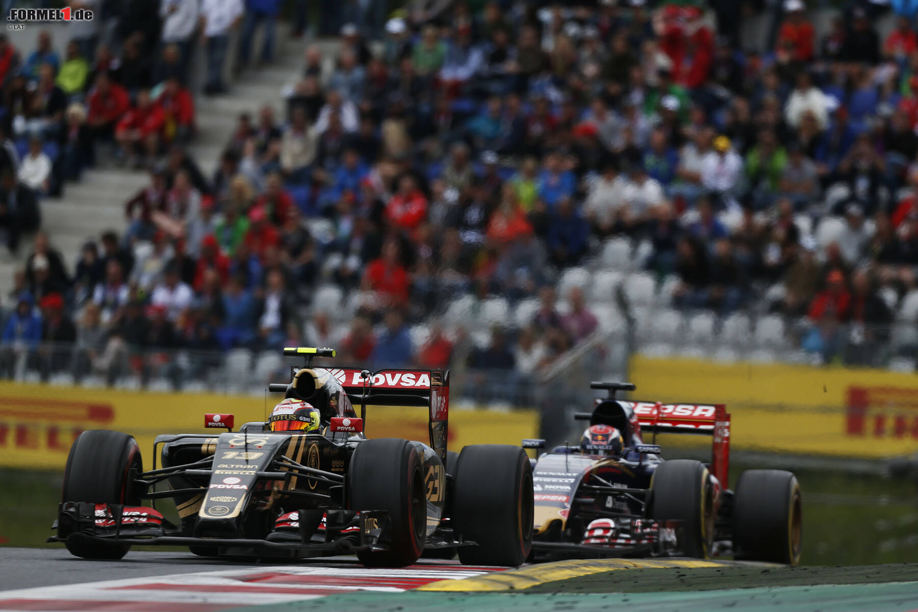 Der spektakulärste Fight des Rennens: Im Windschatten von Max Verstappen gerät Maldonado bei Start und Ziel ins Schleudern, aber der Venezolaner fängt den Drift ab - und geht ein paar Meter weiter trotzdem vorbei, weil Verstappen mit verschlissenen Reifen die erste Kurve verpasst. Lohn für Maldonado: sechs WM-Punkte.