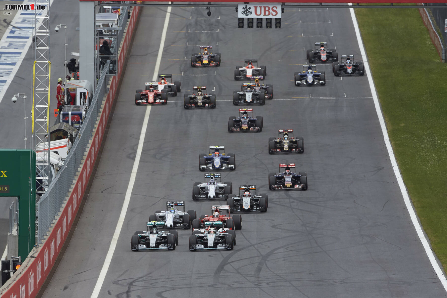 Rosberg setzt sich beim Start in Spielberg gegen Hamilton durch - Ferrari verdirbt Vettel das Podium, das Massa erbt - Horrorcrash zwischen Räikkönen und Alonso