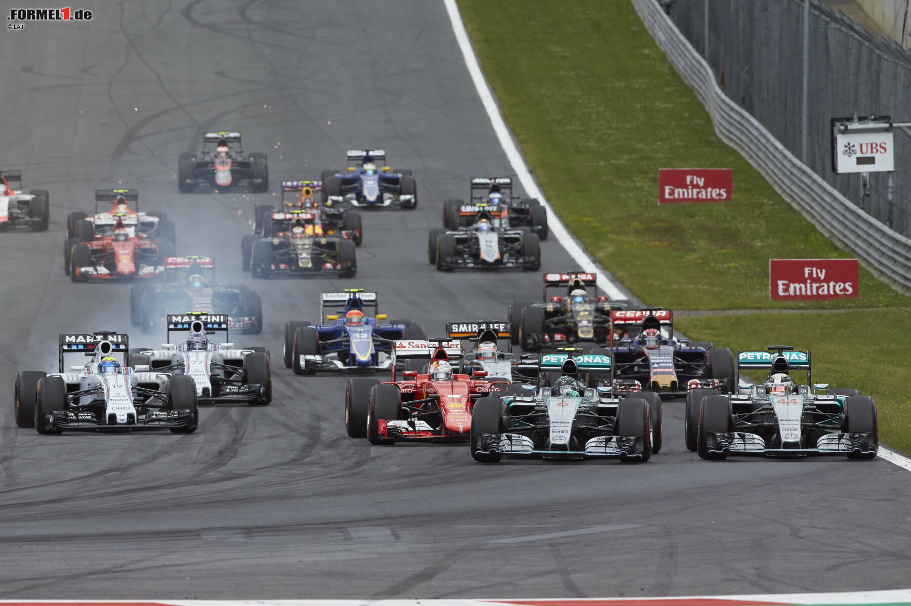 Rosberg setzt sich beim Start in Spielberg gegen Hamilton durch - Ferrari verdirbt Vettel das Podium, das Massa erbt - Horrorcrash zwischen Räikkönen und Alonso