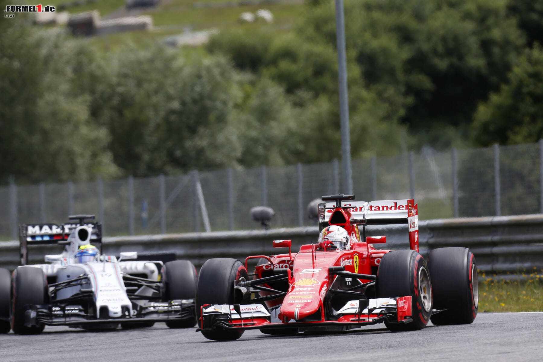 (Motorsport-Total.com) - Sebastian Vettel verpasste beim Grand Prix von Österreich das Podest um weniger als eine Sekunde. Der Ferrari-Pilot war nach dem Start hinter den beiden Mercedes-Fahrern sicherer Dritter, doch der Rennverlauf änderte sich beim einzigen Boxenstopp in der 38. Runde. Rechts hinten klemmte der Schlagschrauber und wertvolle Sekunden gingen verloren. Dadurch fiel Vettel hinter den Williams-Mercedes von Felipe Massa auf den vierten Platz zurück. Der viermalige Weltmeister konnte aufholen, fand aber keinen Weg an Massa vorbei.