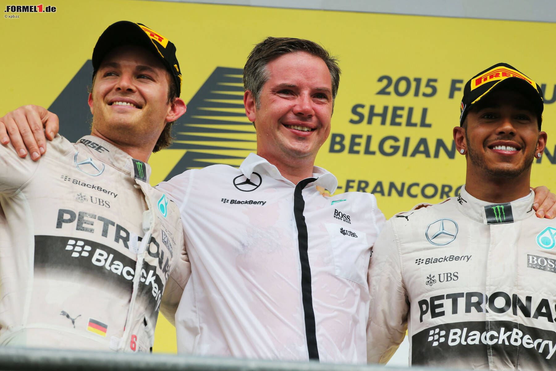 Für Hamilton gab es an einem ungewöhnlich unspektakulären Nachmittag in den Ardennen nur zwei Gefahrenpotenziale: erstens die erste Runde, in der er seine Führung vor Les Combes nur mit Mühe gegen Sergio Perez (Force India) verteidigen konnte, und zweitens der Regenschauer, der wenige Minuten vor Rennende 40 Kilometer von Spa-Francorchamps entfernt war. Aber am Ende setzte er sich sicher durch, zwei Sekunden vor Teamkollege Nico Rosberg und 37,9 vor Romain Grosjean (Lotus).