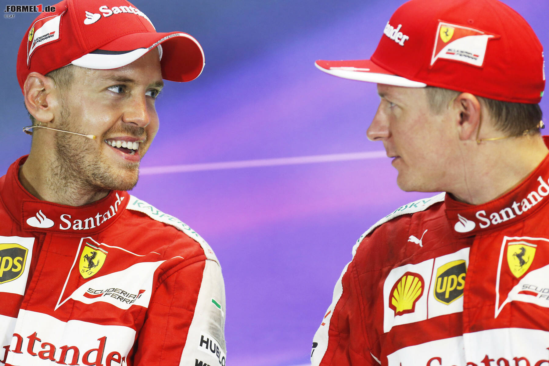 Erstmals stehen Vettel und Räikkönen gemeinsam als Teamkollegen auf dem Podium. Aber trotz Hamiltons Nullrunde fehlen Vettel in der Fahrer-WM immer noch 49 Punkte auf die Spitze. Das sind knapp zwei Siege.
