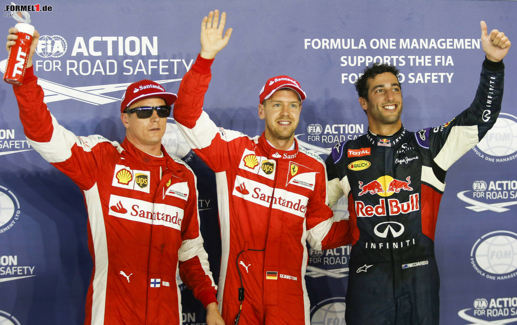 Vettel jubelte nach der Zieldurchfahrt im Boxenfunk sehr euphorisch auf Italienisch und war auch nach dem Aussteigen noch hellauf begeistert: "Es war ein perfektes Wochenende, ich bin sehr glücklich." Sicher war er sich seiner Sache nicht, weil Dauerverfolger Daniel Ricciardo im Red Bull taktierte: "Er hat von Beginn an Druck ausgeübt und gut auf seine Reifen aufgepasst. Das machte es gegen Ende der Stints sehr strategisch. Ich habe aber das Tempo kontrolliert, was auf dieser Strecke nicht einfach ist."