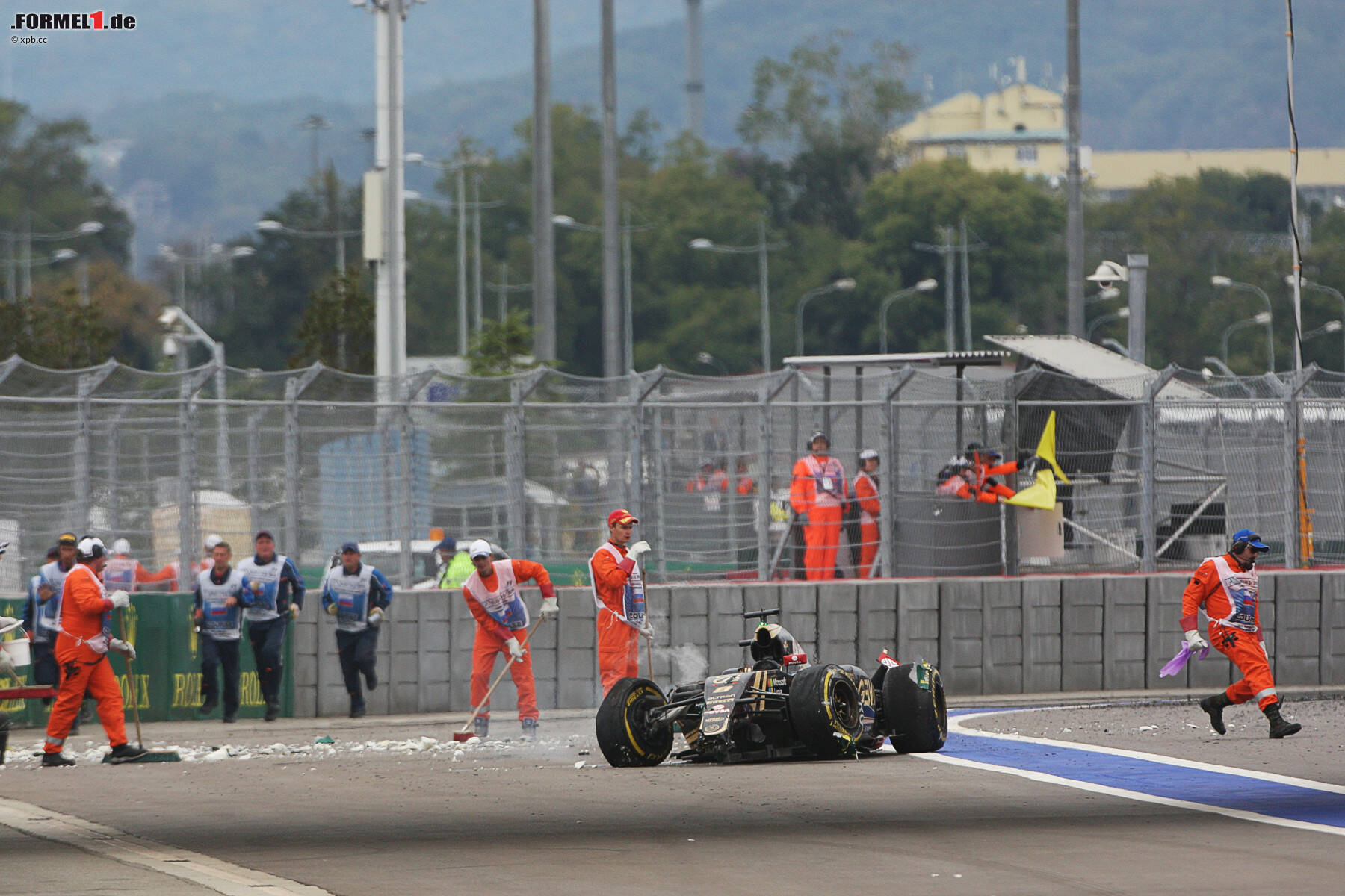 Ein stiller Held des Rennens war Carlos Sainz (Toro Rosso), der nach seinem Horror-Crash am Samstag vom letzten Platz gestartet war, früh Reifen wechselte und vor Kwjat an siebter Stelle lag, als er wegen Überquerens der weißen Linie eine Fünf-Sekunden-Strafe aufgebrummt bekam. Später flog er ab - ausgerechnet wieder in Kurve 13! Die Heckflügel-Platte, die dabei auf der Strecke liegen blieb, brachte ein russischer Streckenposten in Sicherheit.