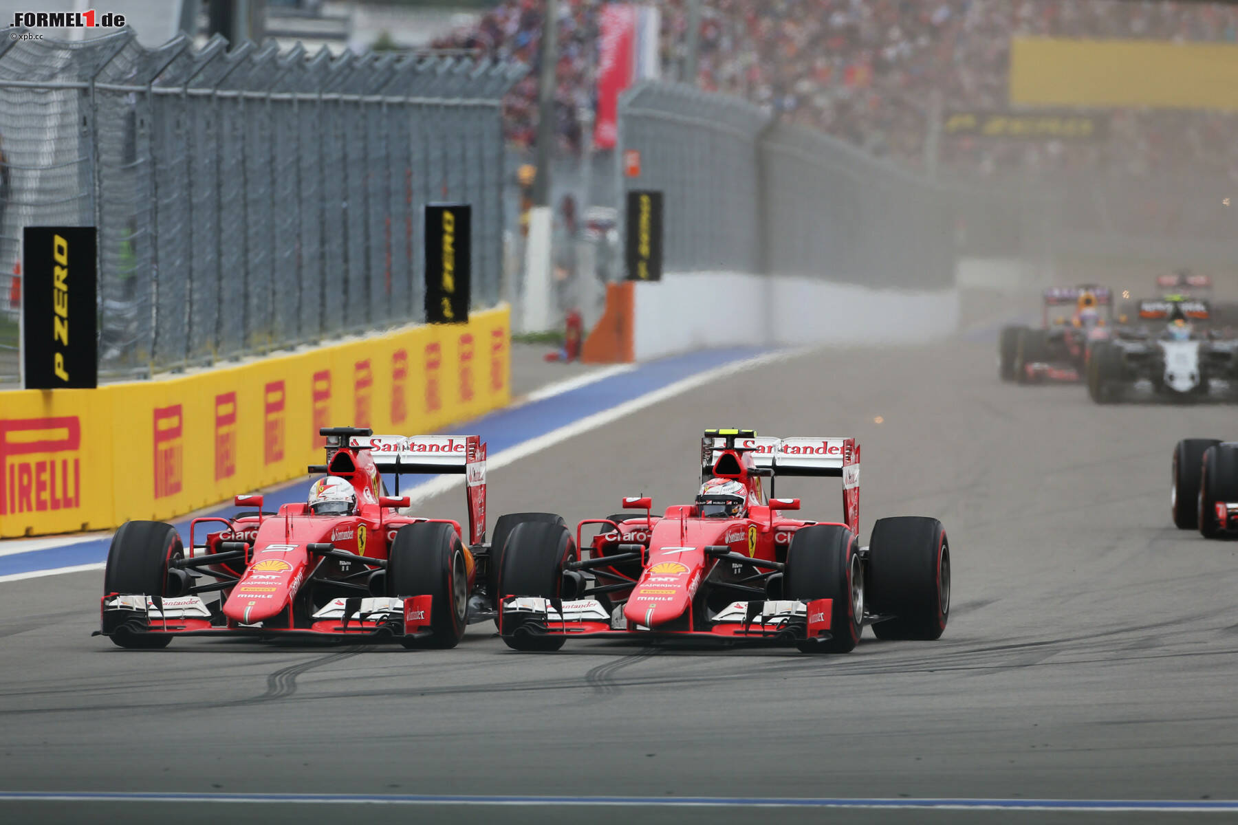 Durch das Chaos in der letzten Runde rückte Felipe Massa (Williams), im Qualifying nur 15., auf den vierten Platz auf, vor Räikkönen, Lokalmatador Daniil Kwjat (Red Bull), Felipe Nasr (Sauber), der mit neuem Renningenieur eine bärenstarke Leistung ablieferte, Pastor Maldonado (Lotus) und den beiden McLaren-Honda-Champions Jenson Button und Fernando Alonso, die während der Safety-Car-Phase wie einige andere Reifen wechselten und richtig pokerten.
