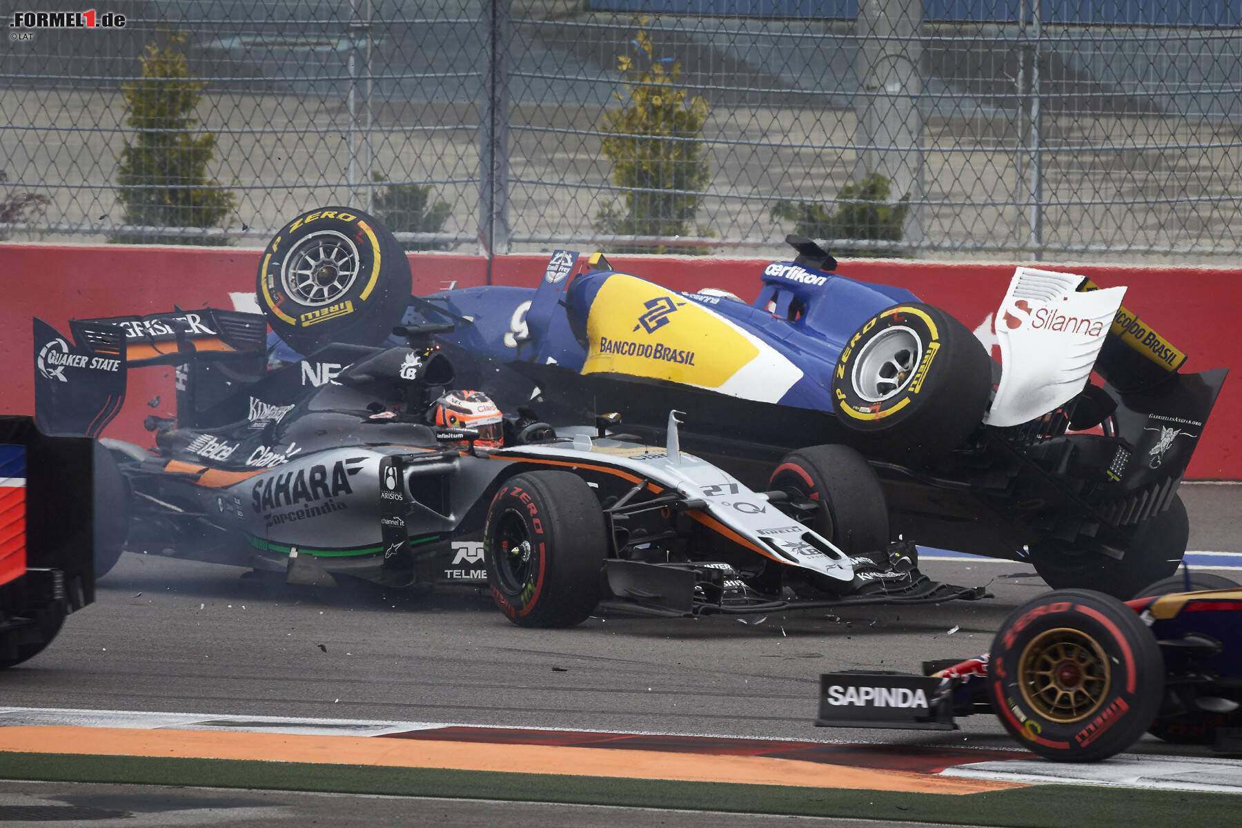 Bitter für Nico Hülkenberg, der heute genau wie sein Teamkollege auf das Podium fahren hätte können. Aber für den Deutschen war Sotschi schon nach dem Start vorbei: Dreher vor der ersten echten Kurve, Max Verstappen (Toro Rosso) in einen Dreher geschubst - und mit Marcus Ericsson (Sauber), der nicht mehr ausweichen konnte, kollidiert und verharkt. "Kann passieren", ärgert sich Hülkenberg, gibt aber zu: Es war ein Fahrfehler.