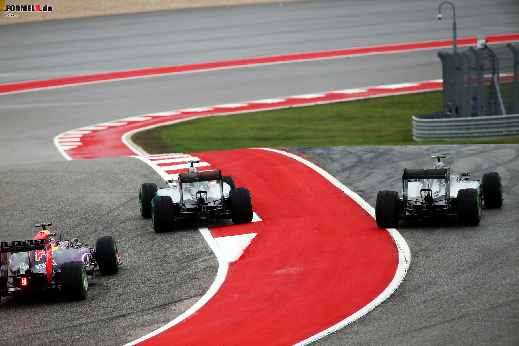 Lange sah es so aus, als würde Rosberg zum ersten Mal in den USA gewinnen können. Nachdem er die Führung am Start zunächst verloren hatte, bremste er sich in der 18. Runde an Hamilton vorbei. Der Deutsche überstand zwei Safety-Car-Restarts und sah wie der sichere Sieger aus, als er seinen Vorsprung in der 48. Runde plötzlich auf über eineinhalb Sekunden ausbaute. Doch ein Fragezeichen blieb noch, weil Hamiltons Reifen im letzten Stint um fünf Runden frischer waren.