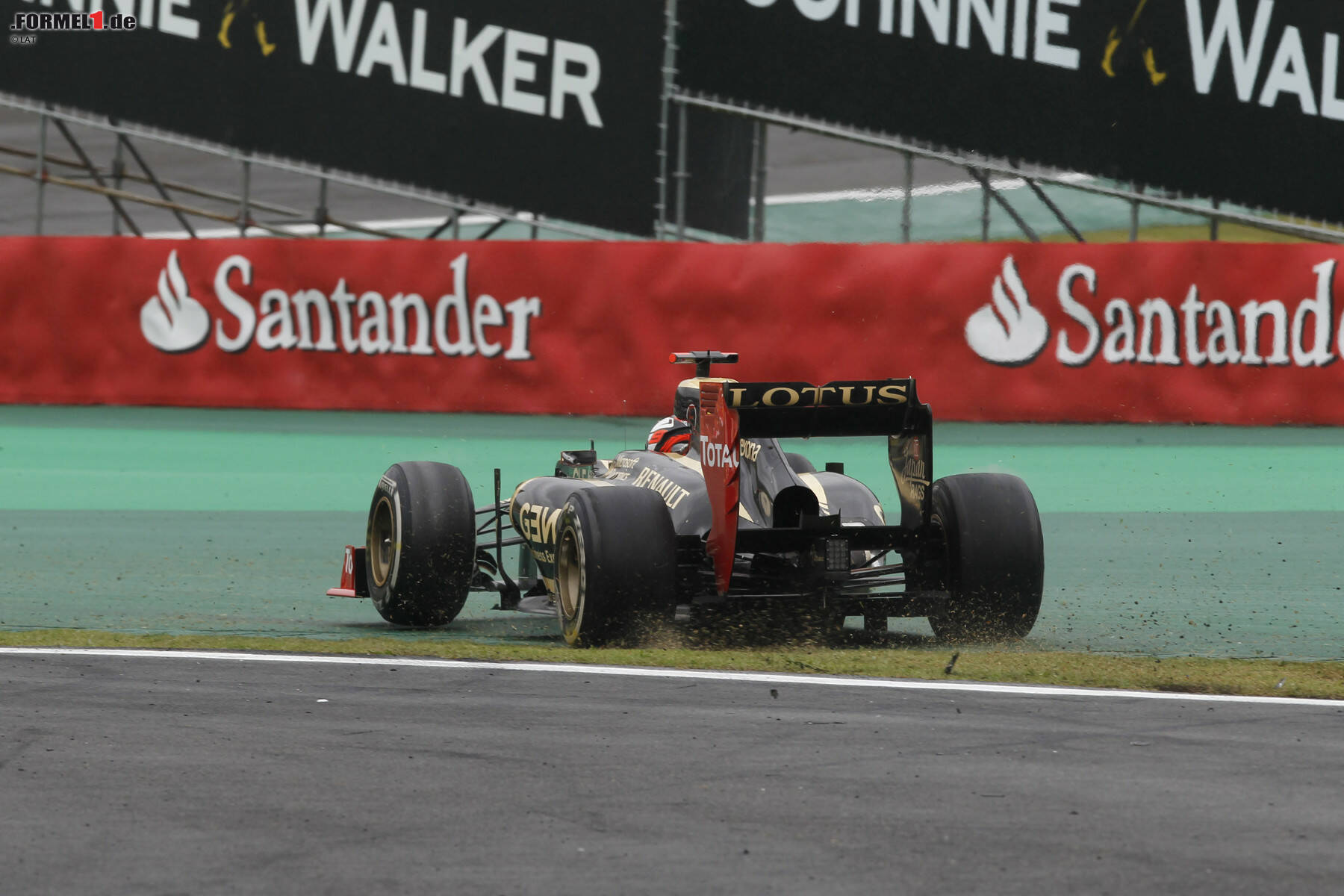 #9 Beim Grand Prix von Brasilien 2012 rutscht Kimi mit seinem Lotus von der Strecke. Anstatt gleich den direkten Weg zurück zu suchen, fährt er solange im Notausgang weiter, bis er vor einem verschlossenen Tor ansteht - und erst recht wenden muss.