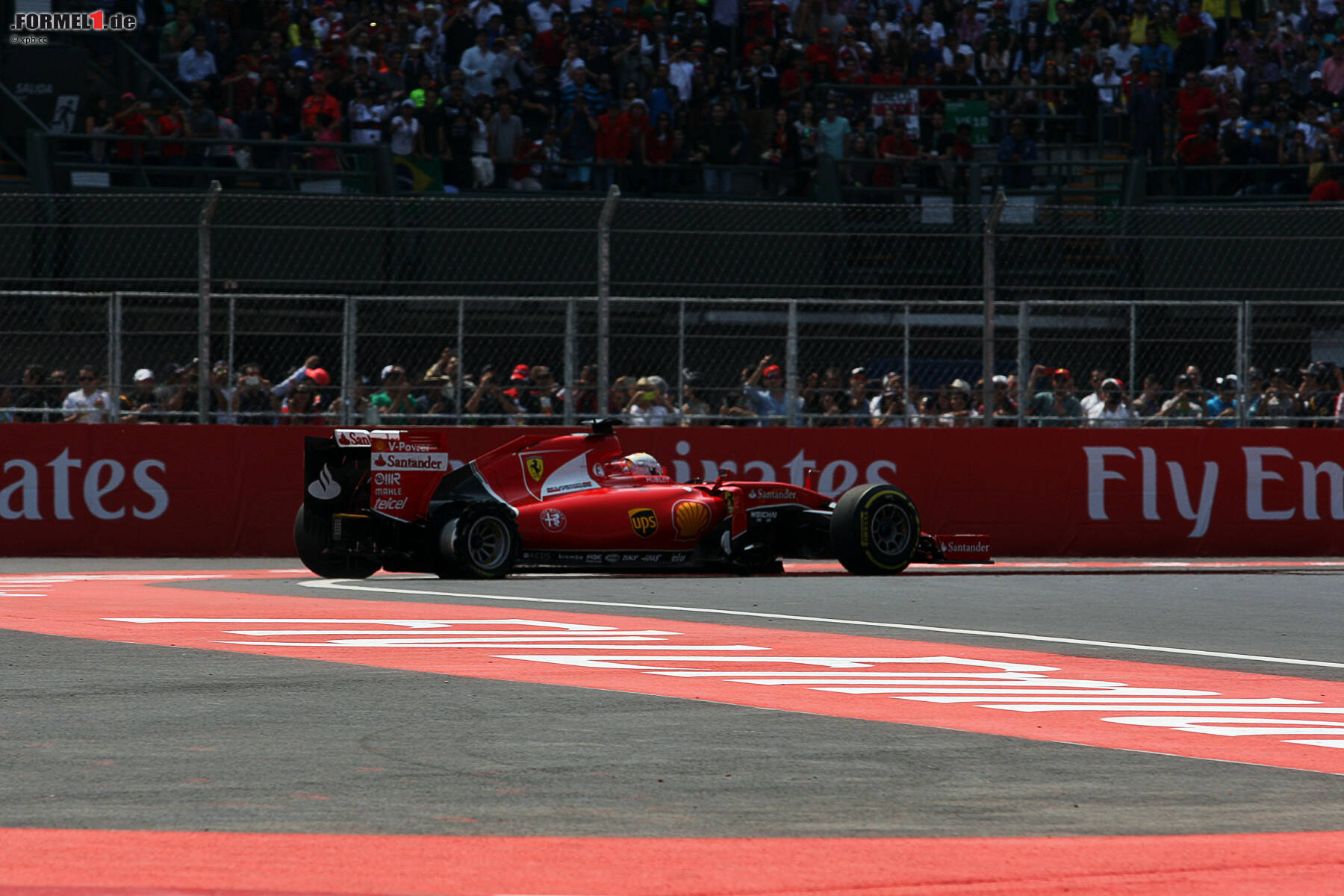 "Es war ein bisschen der Wurm", beklagt Vettel. "Da war eigentlich das Rennen schon gelaufen." Im Anschluss patzte der Ex-Weltmeister selbst: Er leistete sich zwei Fahrfehler, bei denen er den Ferrari in die Auslaufzone respektive auf den Randstein setzte und fing sich einen Bremsplatten ein. Dann der große Knall: Wie zuvor verlor Vettel in der 52. Runde in Kurve 7 die Kontrolle über sein Auto, knallte in die Streckenbegrenzung und musste aus seinem beschädigten Wagen aussteigen.
