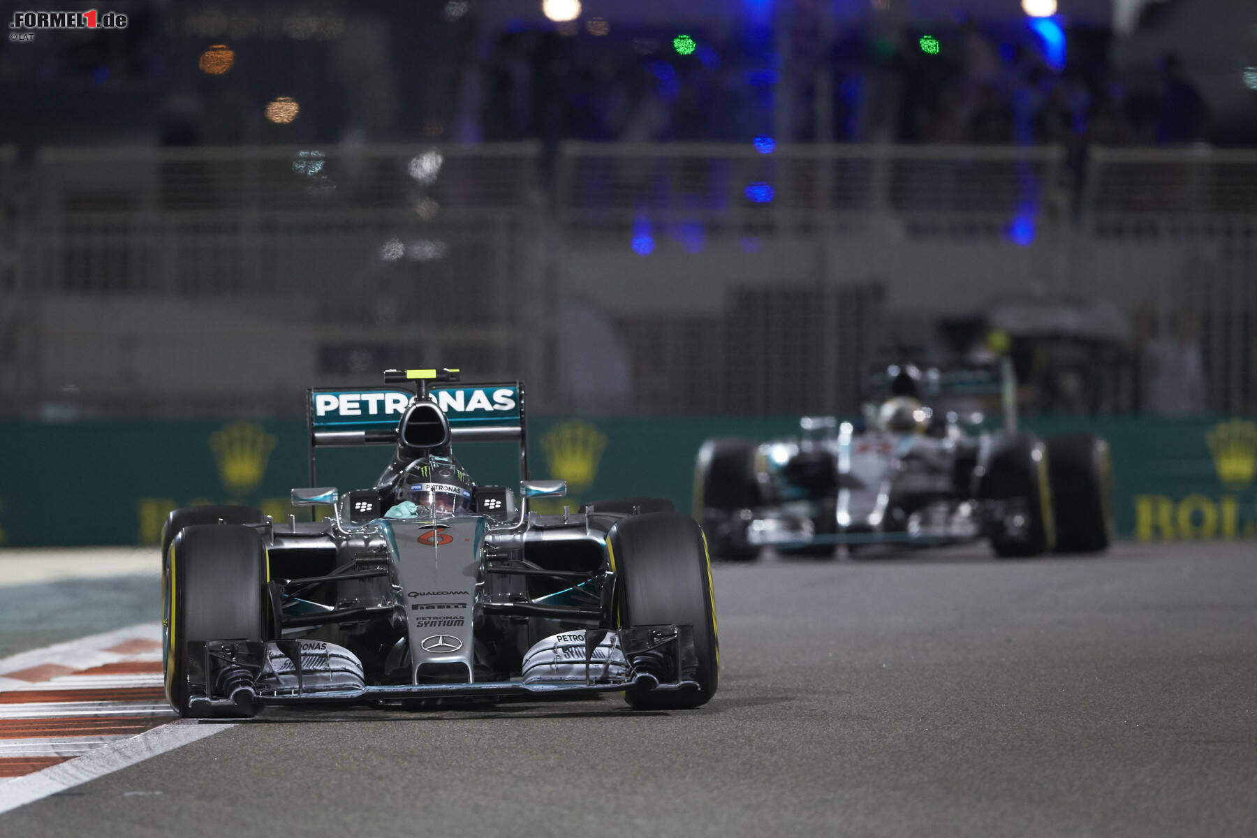 (Motorsport-Total.com) - Nico Rosberg (Mercedes) ist der Sieger des Formel-1-Saisonfinales 2015. Unter dem Flutlicht des Yas Marina Circuit in Abu Dhabi legte er von der Pole-Position gestartet einen souveränen Sieg hin. Nach den 55 Runden hatte Rosberg einen Vorsprung von acht Sekunden auf Teamkollege und Weltmeister Lewis Hamilton.