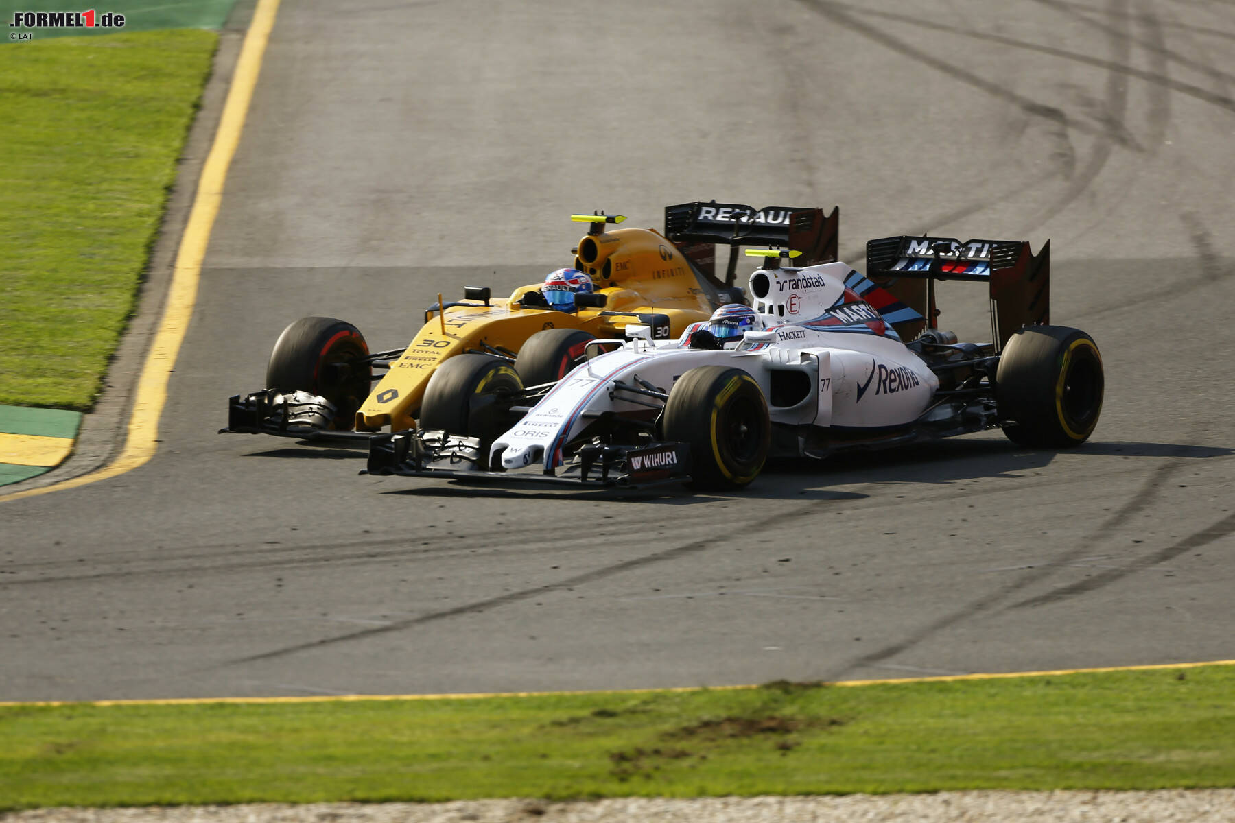 Auch weiter hinten gibt's tolle Rad-an-Rad-Action: Valtteri Bottas knöpft Renault-Rookie Jolyon Palmer den elften Platz ab, muss sich dafür aber mächtig anstrengen und braucht zwei Kurven. Palmer ist eine der kämpferischen Erscheinungen, schrammt jedoch am Ende um 6,6 Sekunden an einem WM-Punkt vorbei.