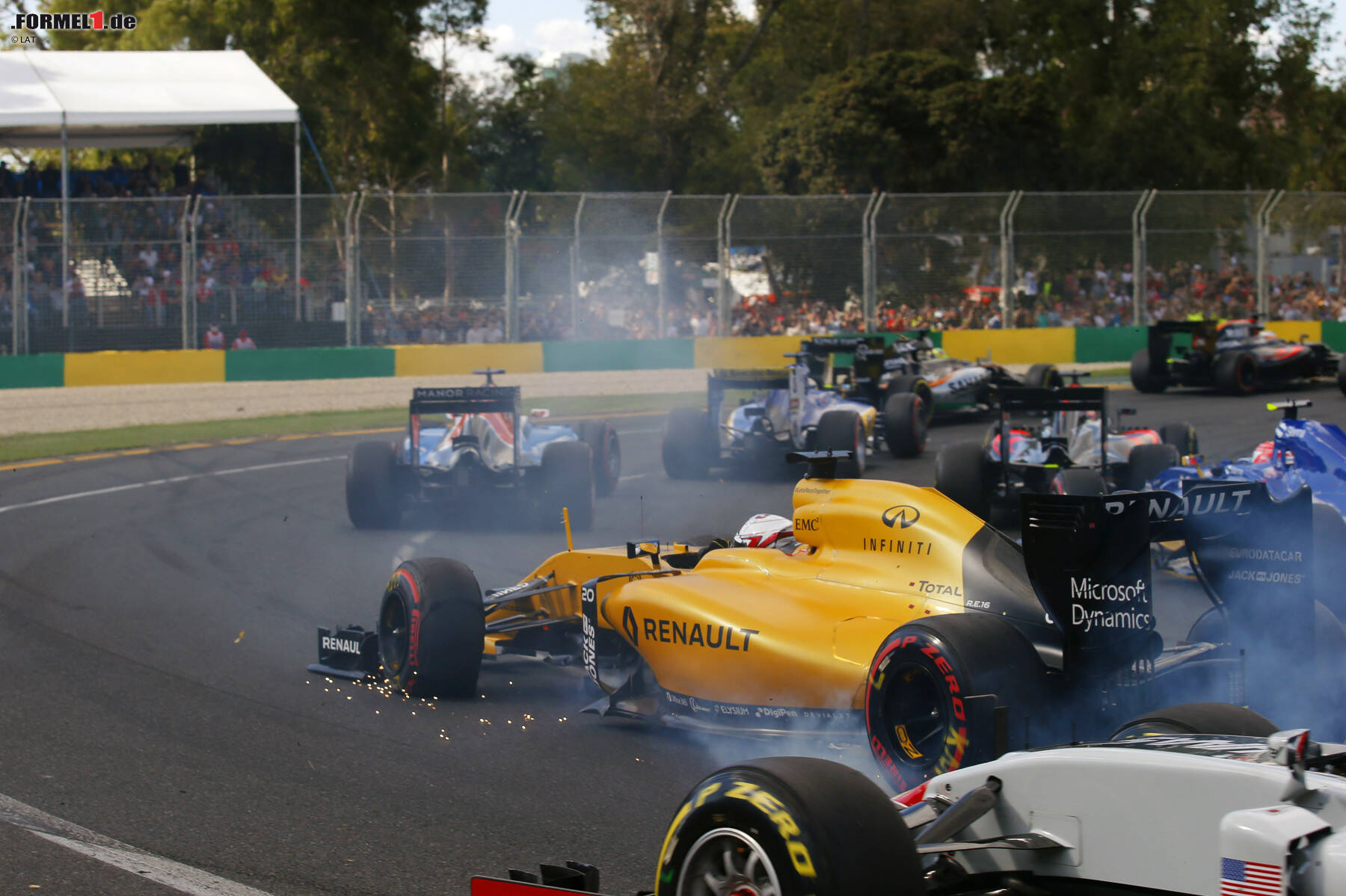 Verstappen fluchte im Funk ("Das ist ein Witz") und schmiss sein Auto vor Wut fast in die Mauer, ehe er auf seinen Teamkollegen auffuhr und sich den Frontflügel beschädigte. Trotzdem war der 18-Jährige noch 1,5 Sekunden pro Runde schneller, kam an Sainz aber nicht mehr heran und musste mit einem WM-Punkt vorliebnehmen. DTM-Champion und Formel-1-Debütant Pascal Wehrlein (Manor), der nach tollem Start kurze Zeit auf Rang 14 lag, wurde mit Rundenrückstand als 16. und Letzter abgewunken, zeigte jedoch einen Einstand ohne nennenswerte Patzer.