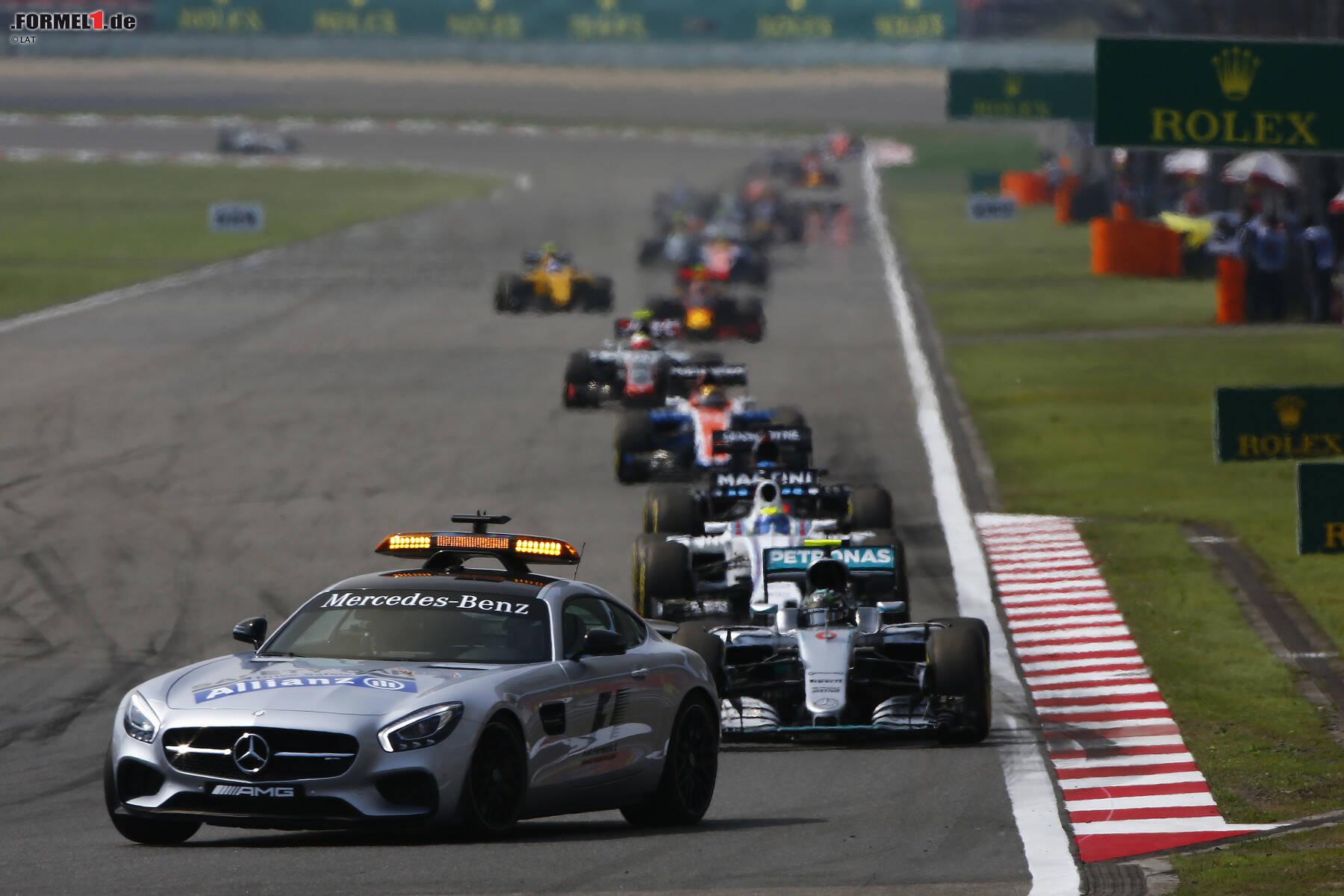Damit war die verrückte Startphase noch lange nicht durch. Weiter hinten rasierte sich Hamilton am Sauber von Felipe Nasr den Frontflügel ab. Der Vorjahressieger wechselte zuerst den Flügel und dann während der Safety-Car-Phase von Soft auf Supersoft und wieder zurück auf Soft - ein taktischer Kniff, um die Supersoft-Reifen später nicht mehr fahren zu müssen, wo er doch ohnehin schon Letzter war. Gemeinsam mit Räikkönen startete er dann seine Aufholjagd.