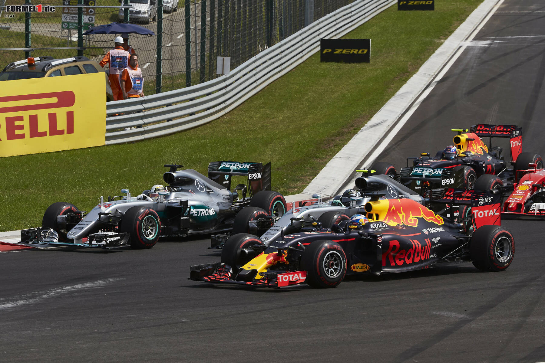 Ricciardo wiederum ist auf den ersten Metern schneller als die beiden Silberpfeile und in der ersten Kurve drauf und dran, sogar in Führung zu gehen. Zumindest Polesetter Rosberg schnappt er sich, ...