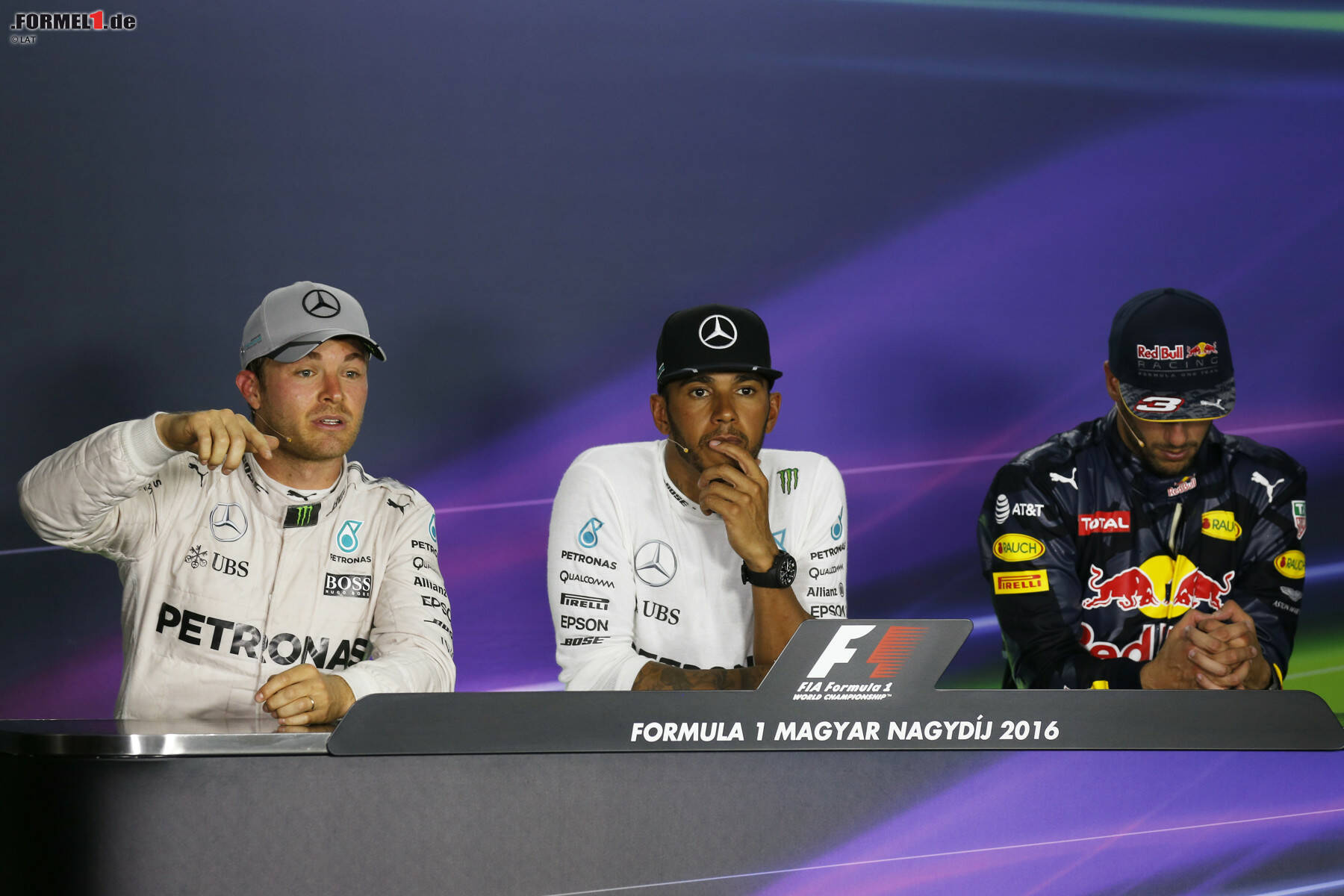 Hamilton erklärt, um den Erfolg kurz nach dem Start gebangt zu haben, als er zwar die Führung von Rosberg übernahm, aber von Daniel Ricciardo im Red Bull attackiert wurde. "Er hat verdammt viel Druck gemacht, aber dann hat das Team mit der Strategie einen guten Job gemacht", so der Brite, der die Szenerie sonst von der Spitze aus bestimmte und nach eigener Aussage keine Sekunde um Platz eins fürchtete. Er belächelt eine weitere hitzige Szene, als er dem überrundeten Haas-Pilot Esteban Gutierrez den Stinkefinger zeigte, weil er nicht sofort aus dem Weg ging, als die Spitze angeflogen kam.