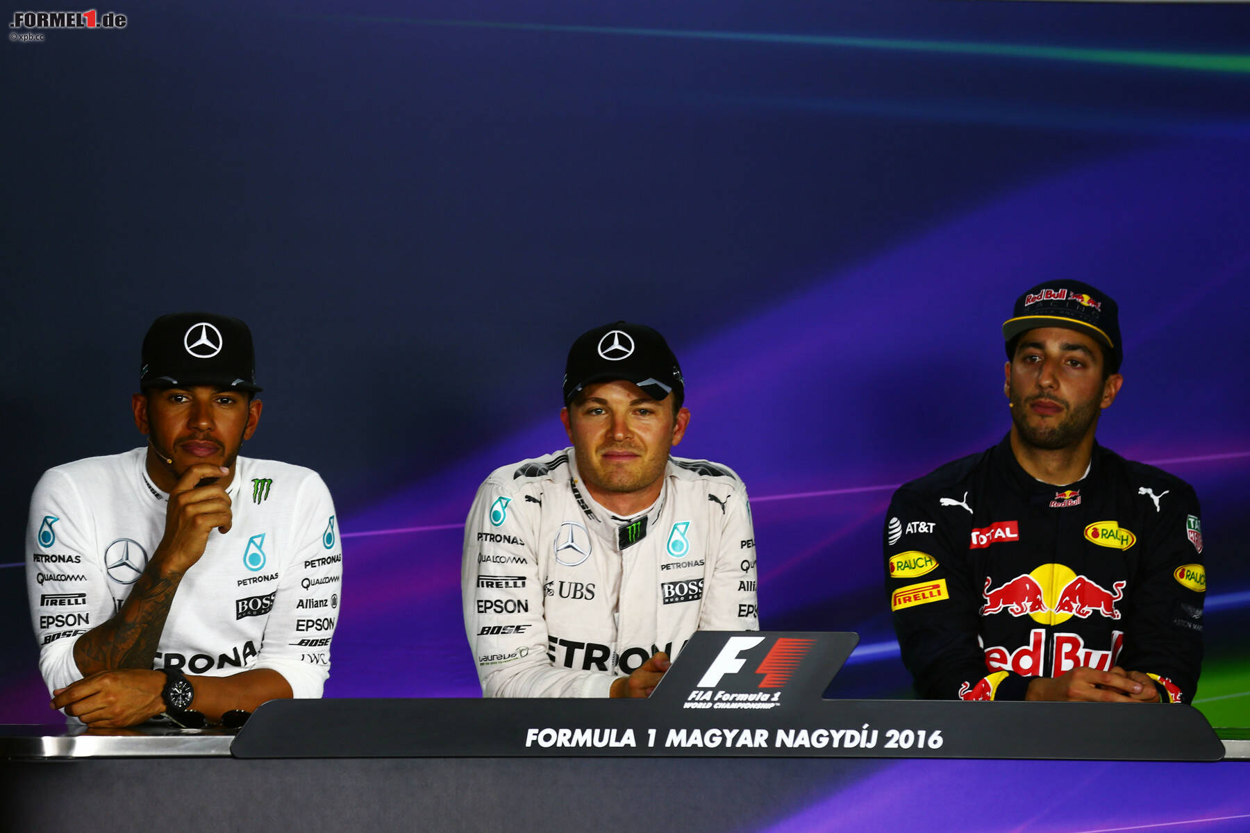 Hamilton erklärt, um den Erfolg kurz nach dem Start gebangt zu haben, als er zwar die Führung von Rosberg übernahm, aber von Daniel Ricciardo im Red Bull attackiert wurde. "Er hat verdammt viel Druck gemacht, aber dann hat das Team mit der Strategie einen guten Job gemacht", so der Brite, der die Szenerie sonst von der Spitze aus bestimmte und nach eigener Aussage keine Sekunde um Platz eins fürchtete. Er belächelt eine weitere hitzige Szene, als er dem überrundeten Haas-Pilot Esteban Gutierrez den Stinkefinger zeigte, weil er nicht sofort aus dem Weg ging, als die Spitze angeflogen kam.
