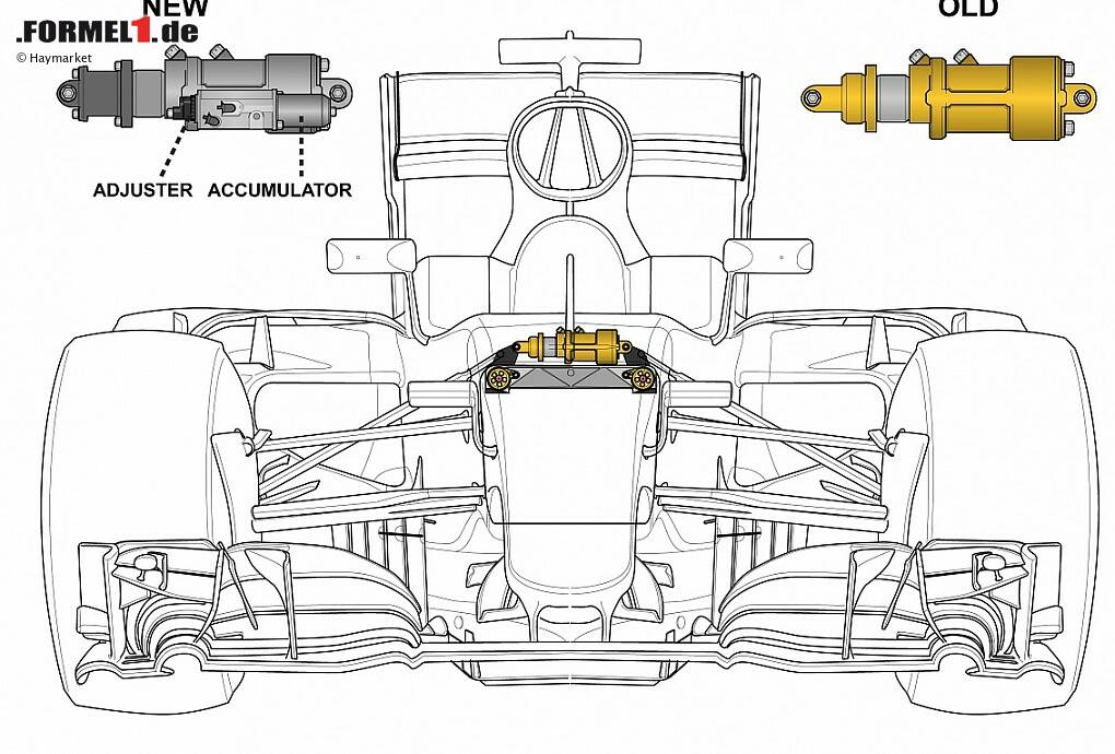 Mercedes fährt ein hydraulisches Aufhängungssystem, das an das verbotene FRIC-System erinnert. Damit soll das Auto ruhiger auf der Straße liegen und die Fahrzeughöhe besser kontrolliert werden. Gegen die Regeln ist es nicht, weil es als "passiv" angesehen wird.
