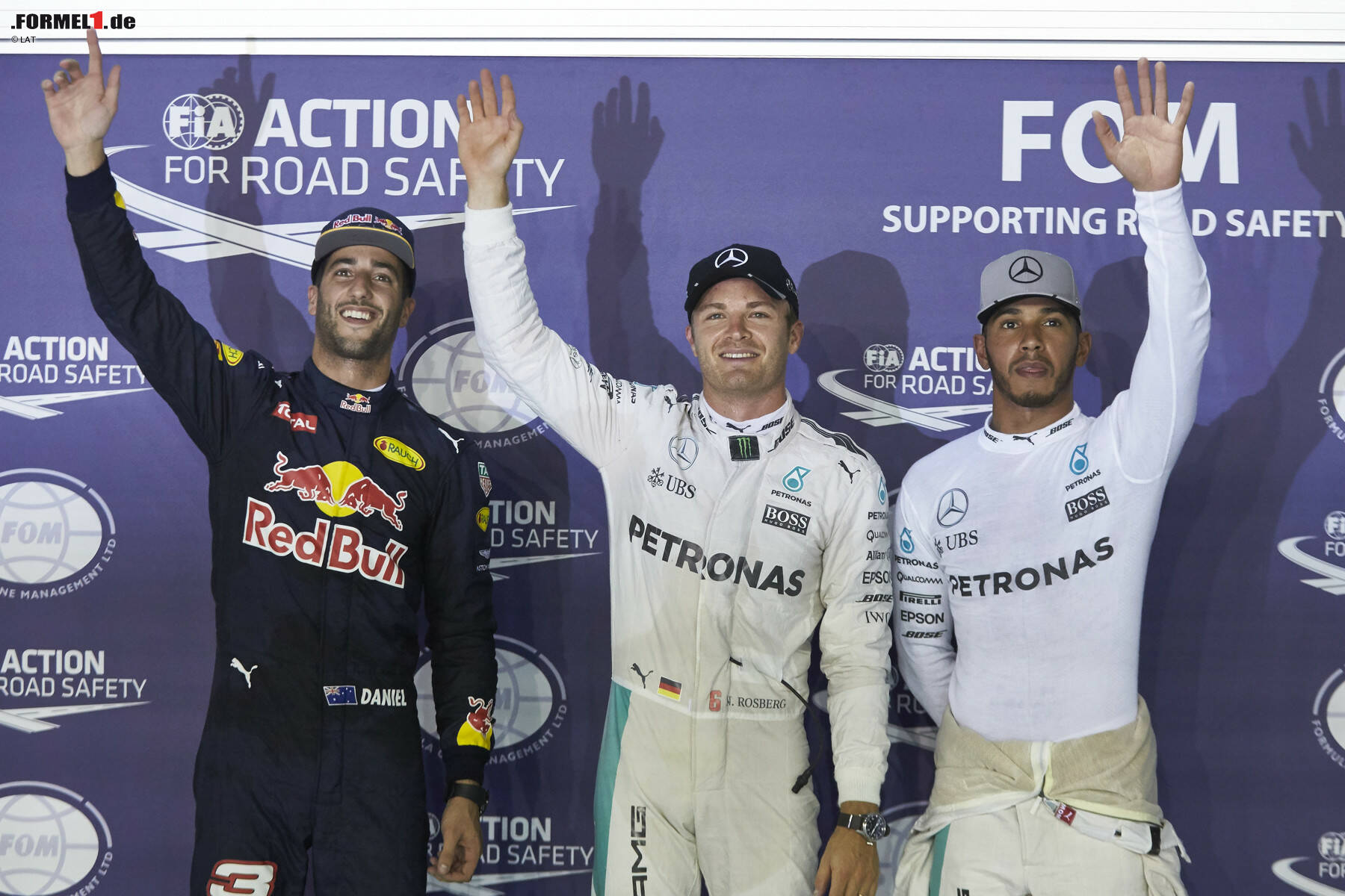 (Motorsport-Total.com) - Besser hätte Nico Rosberg seinen Jubiläums-Grand-Prix nicht abschließen können. Pünktlich zum 200. Rennstart der Karriere gab es für den Mercedes-Piloten den Sieg in Singapur und die WM-Führung von Lewis Hamilton zurück. Der Deutsche fuhr auf dem Marina Bay Street Circuit einen Start-Ziel-Sieg heraus (das Rennen zum Nachlesen im Live-Ticker), der allerdings alles andere als eine einfache Angelegenheit gewesen ist. Nicht einmal eine halbe Sekunde Vorsprung rettete Rosberg vor Daniel Ricciardo (Red Bull) ins Ziel.