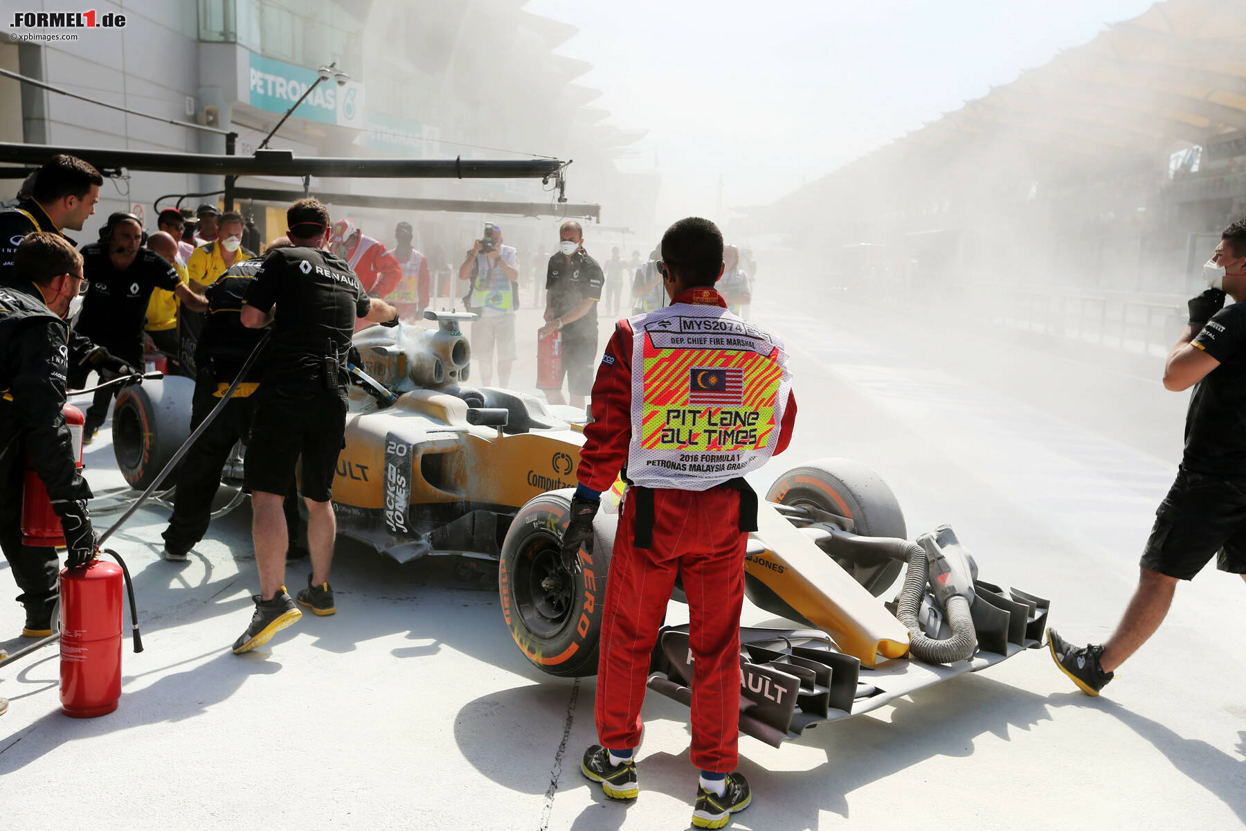 (Motorsport-Total.com) - The World's hottest race! Der Slogan des Grand Prix von Malaysia wurde für Kevin Magnussen schon nach wenigen Minuten des ersten Trainings in Sepang (hier geht's zum Trainingsbericht) zur dramatischen Realität: Der Däne war gerade nach zwei Installationsrunden an die Box gekommen, als Flammen aus der Airbox züngelten. Bereits vor dem warnenden Funkspruch sprang Magnussen aus seinem Boliden, der danach trotz einer siebenminütigen Löschaktion ein kompletter Raub der Flammen wurde und abbrannte.