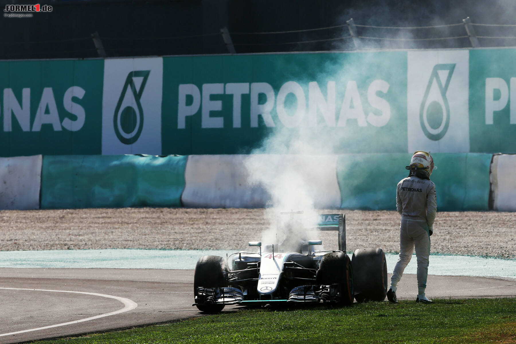 Vorherige Warnsignale dafür gab es nicht. Als Hamilton durch die Haarnadel vor Start und Ziel fuhr, begann zwar der Öldruck zu sinken, aber schon ein paar Sekunden später spuckte sein Mercedes Feuer und Qualm. Der Motor wurde noch am Sonntagabend in Sepang auf die Reise nach Brixworth geschickt, wo er am Dienstag eintraf. Anschließend begann die genaue Untersuchung, die mit der Identifikation des defekten Kurbelwellenlagers endete.