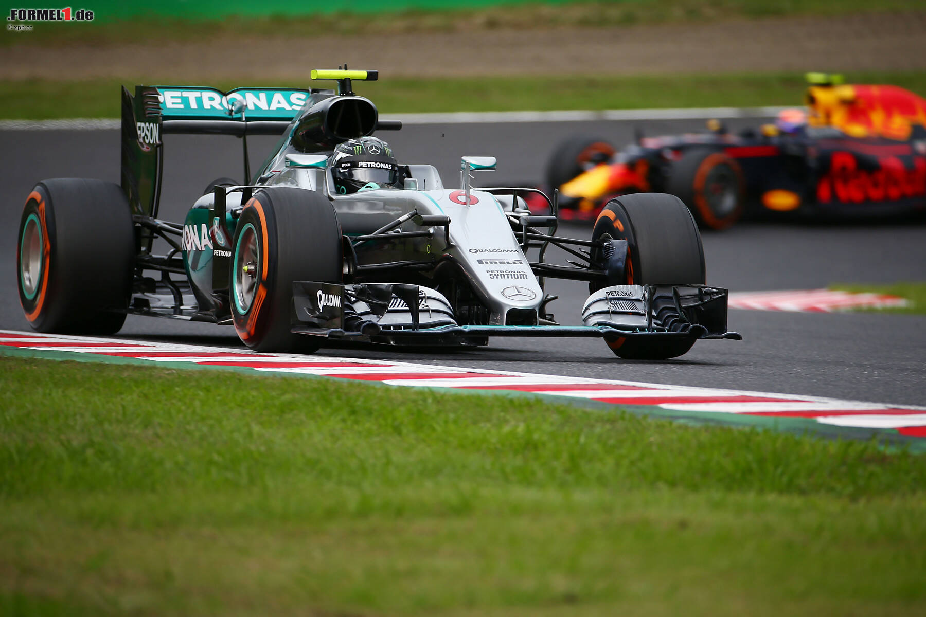 Für den läuft's wie am Schnürchen: Bis Verstappen in der zehnten Runde von Soft auf Hard wechselt (Doppelstopp bei Red Bull), baut Rosberg 5,9 Sekunden Vorsprung auf. Verstappen dreht zwei schnelle Runden, bis auch der Leader wechselt, und kommt bis auf 2,0 Sekunden heran. Aber Rosberg kann das Tempo erhöhen, wann immer er möchte.