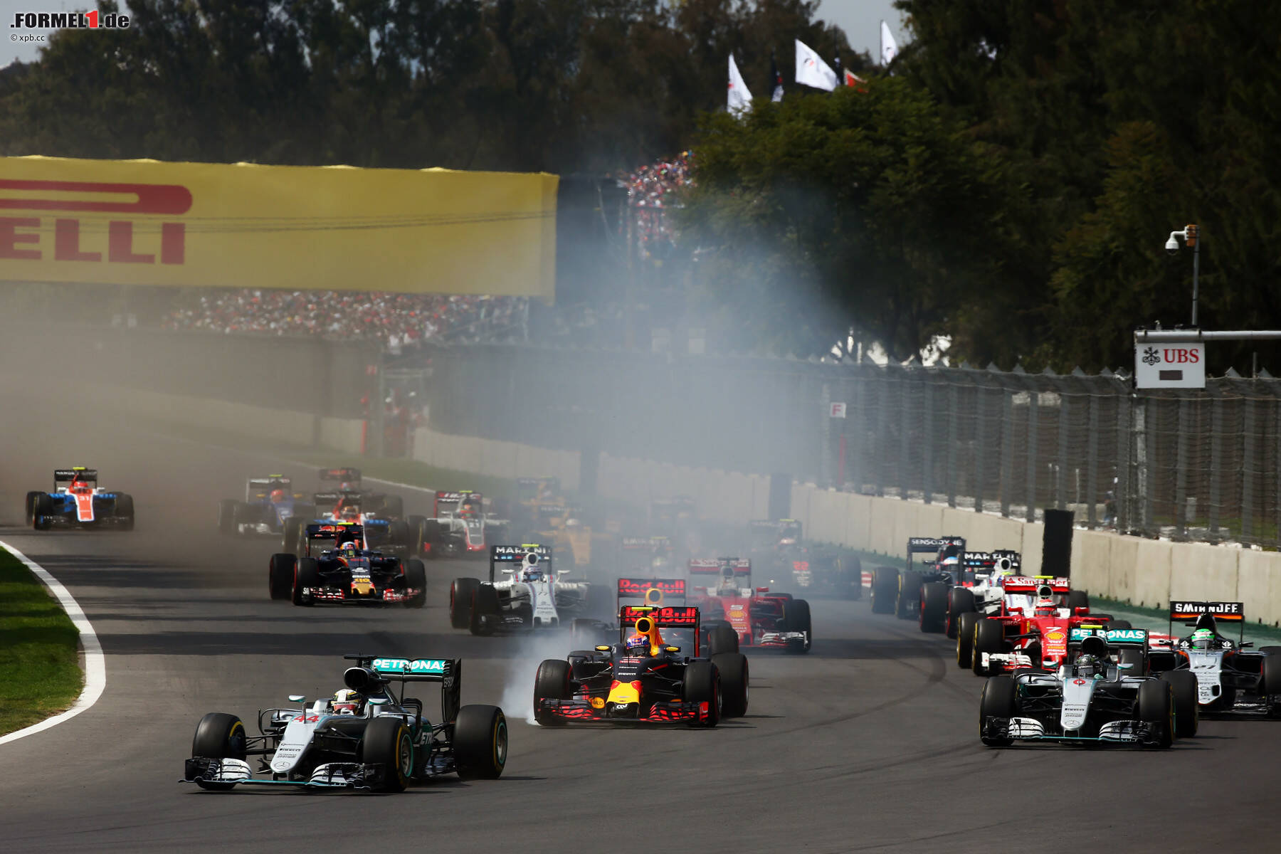 Bereits in der ersten Runde war das Rennen für Pascal Wehrlein (Manor), im Qualifying starker 16., zu Ende. Wehrlein wurde in der ersten Kurvenkombination von Esteban Gutierrez (Haas) angeschubst, schlitterte dadurch in den Sauber von Marcus Ericsson und schied aus. Ericsson und Gutierrez konnten weiterfahren, Wehrlein war sauer: "Es ist nicht das erste Mal bei Gutierrez, dass er es übertreibt!" Die Rennleitung drückte bei dessen Heimrennen aber ein Auge zu.
