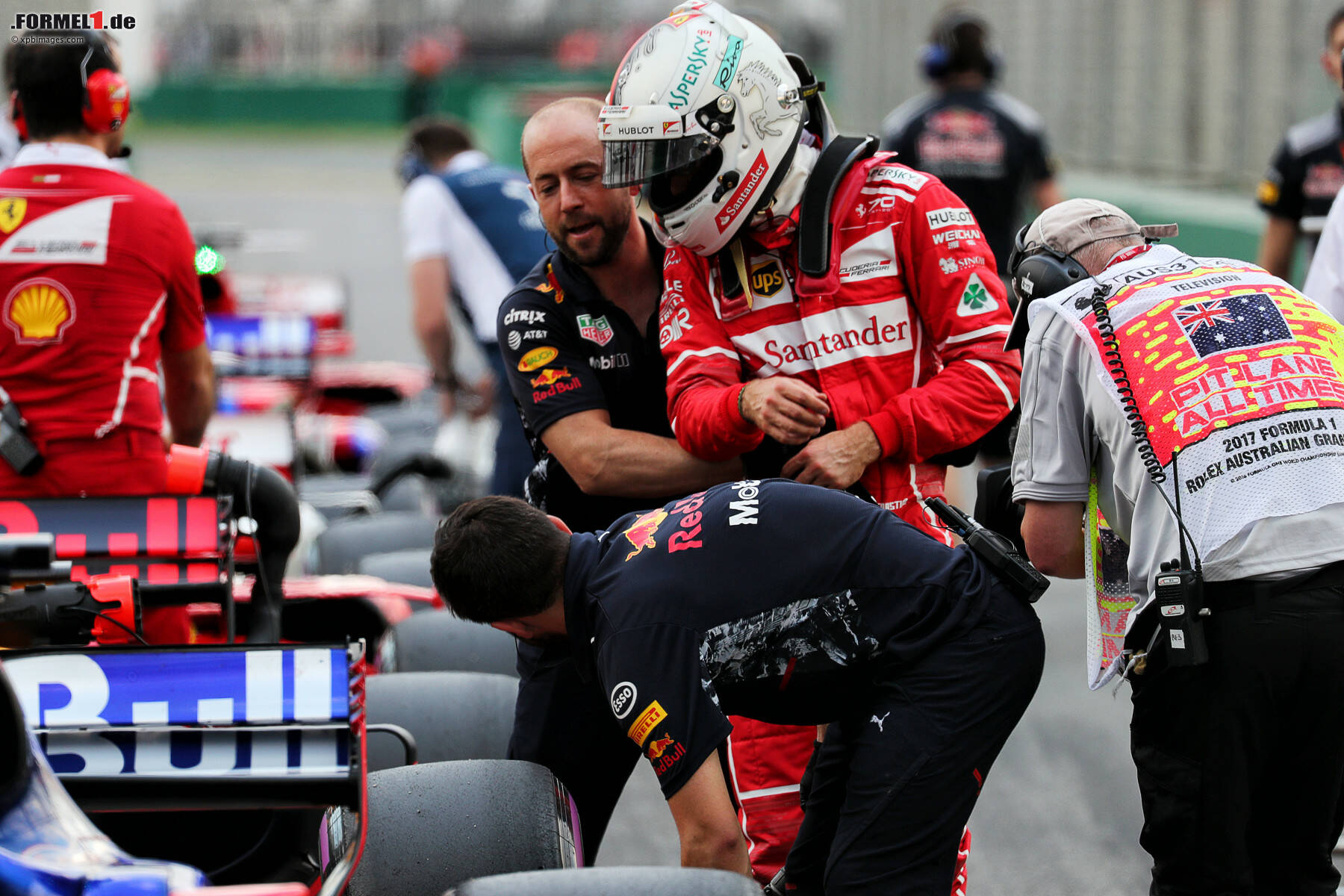 Auch Berührungsängste zeigte der 29-Jährige keine: Beim Red Bull und beim Mercedes griff Vettel zum seitlichen Windabweiser, abschließend prüfte er auch noch den Frontflügel von Lewis Hamiltons Auto mit seinen Fingern. Als der Mercedes-Superstar bei den TV-Interviews durch einen Reporter davon Wind bekam, versuchte er, die Situation aufzuklären.