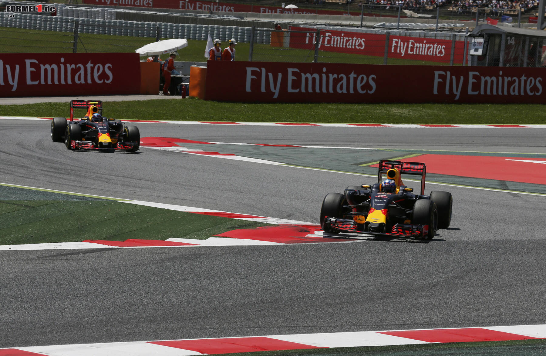 Premiere in der Formel 1: Als Ricciardo in der elften Runde an die Box kommt und von Soft auf Medium wechselt, führt erstmals ein Niederländer einen Grand Prix an. Vor dem Stopp beträgt der Red-Bull-interne Abstand 1,6 Sekunden, danach 3,9. Das beweist: Der frühere Boxenstopp gewinnt.