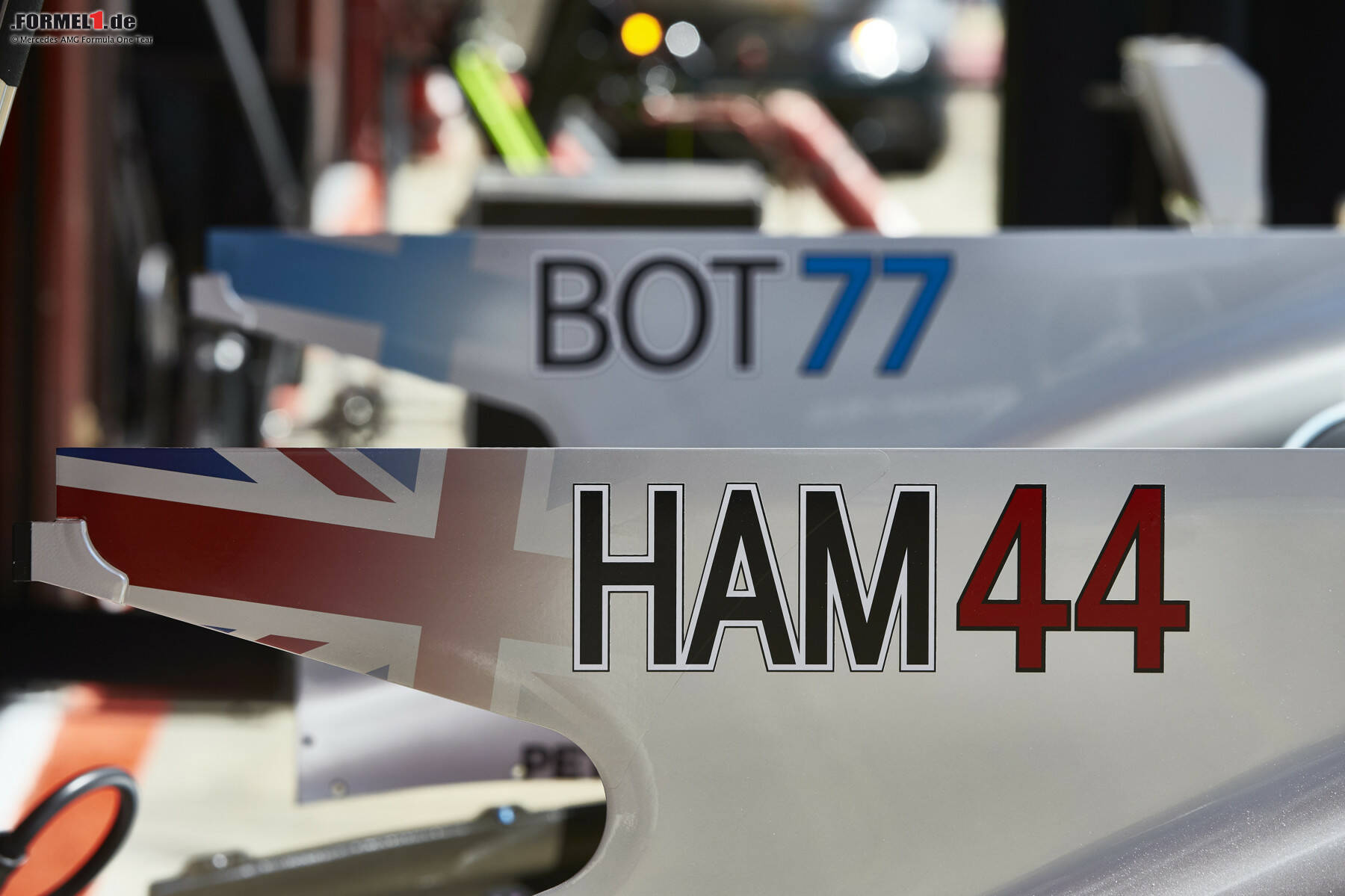Wie fast alle Teams hat Mercedes die Lösung auf der Heckfinne platziert, wo Kürzel, Startnummer (in unterschiedlichen Farben!) und Landesflagge des Piloten präsentiert werden - vorbildlich. Bei Williams begnügt man sich hingegen mit der Heckflügel-Seitenplatte - und bei Force India? Da sucht man ein Kürzel vergebens: Weil die größten Sponsoren BWT und NEC ebenfalls ein Drei-Buchstaben-Kürzel sind, könnte es zu Verwirrungen kommen. Deswegen hat man nur die Nummer.