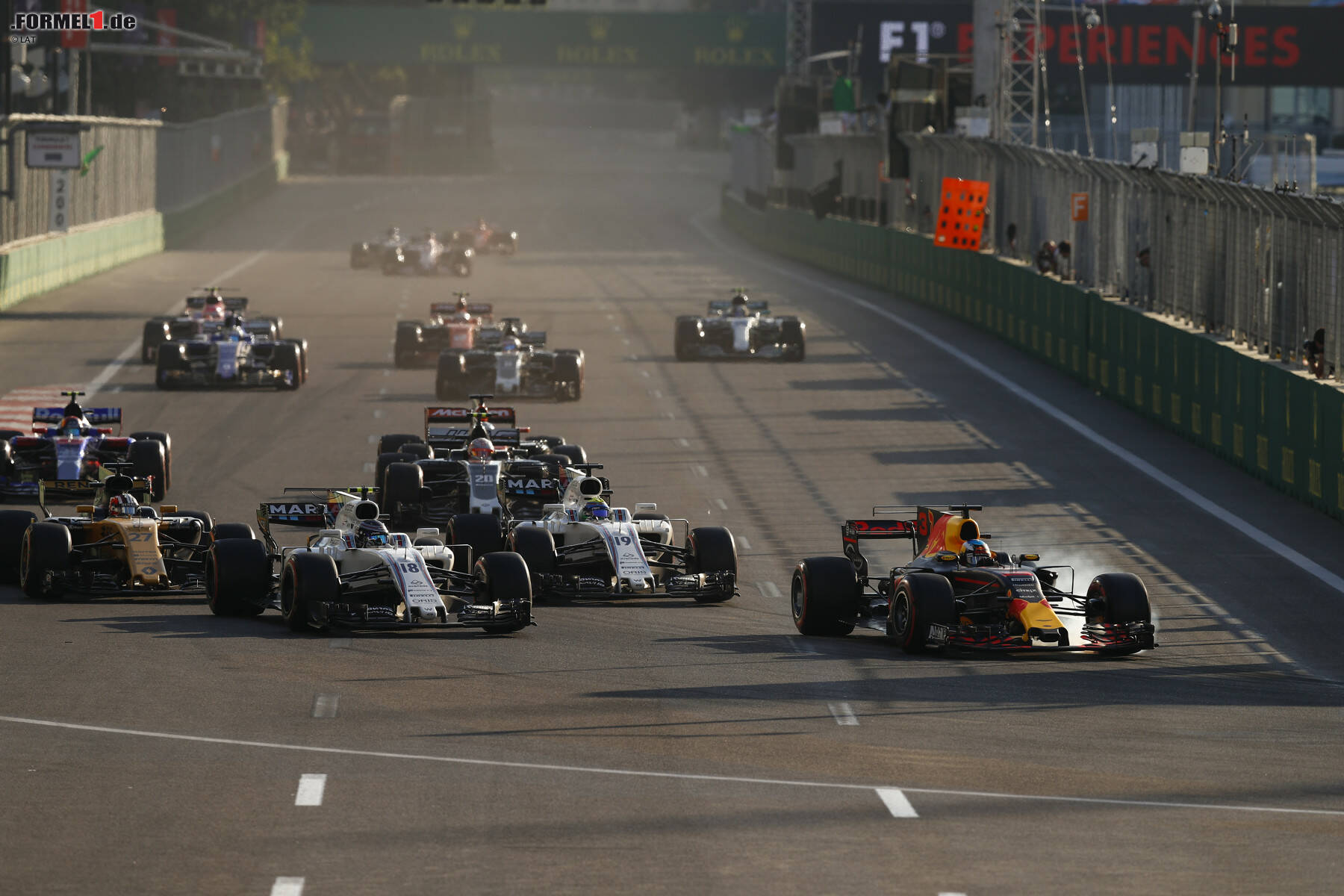 Es ist die Schlüsselszene von Ricciardos Rennen: Beim letzten Restart nach den Roten Flaggen schnappt er sich beide Williams - auch, weil Massa (Stoßdämpfer) zu dem Zeitpunkt bereits mit stumpfen Waffen verteidigt. Wenig später muss der Routinier Hülkenberg durchlassen. "Heute hätte mein Tag sein können", ärgert sich Massa später.