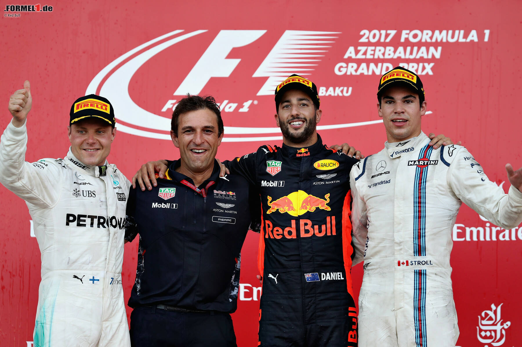 Verrückter geht's nicht: Daniel Ricciardo (P17 nach Bremsen-Reparaturstopp) gewinnt das Rennen in Baku vor Valtteri Bottas (nach Kollision mit Kimi Räikkönen schon überrundet) und Lance Stroll (laut Jacques Villeneuve schlechtester Rookie aller Zeiten)! Der Grand Prix von Aserbaidschan 2017 ist der Formel-1-Kracher des Jahres.