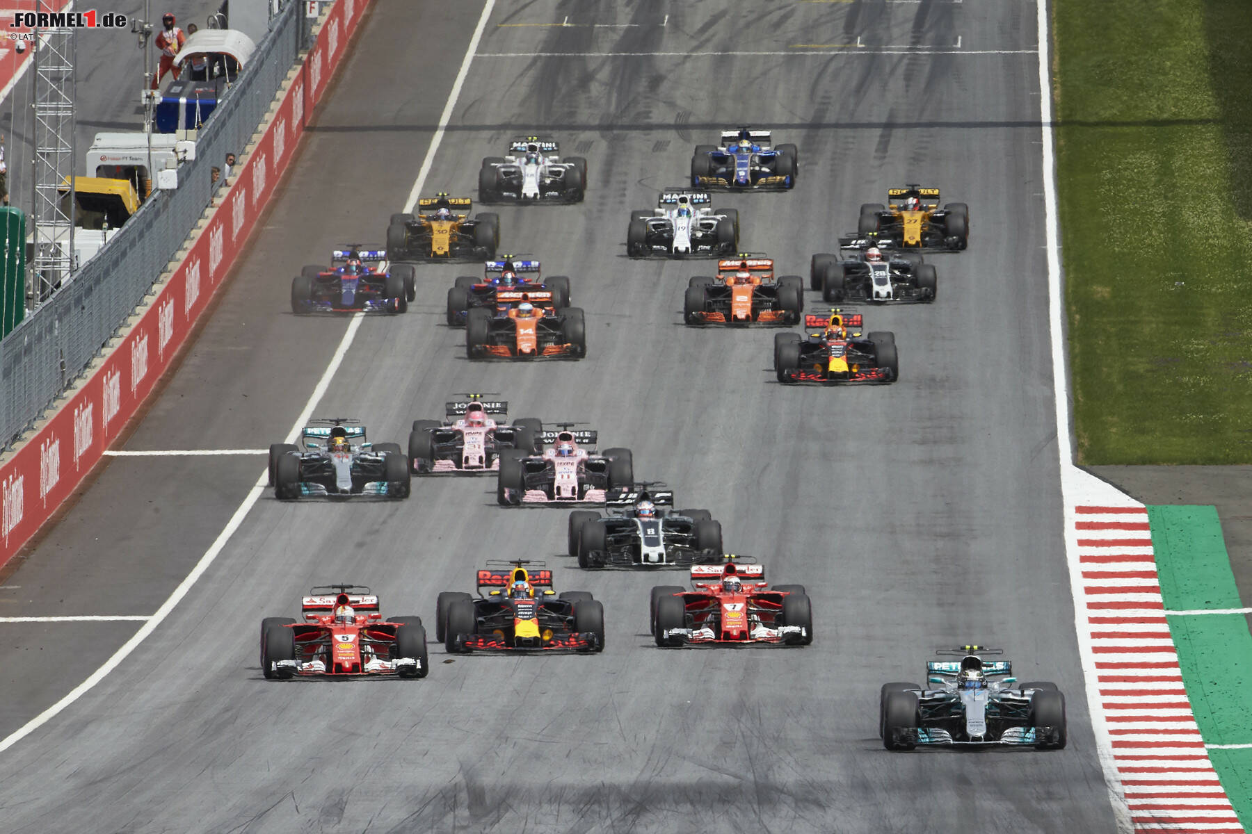 Start zum Grand Prix von Österreich 2017: Vorne hat Valtteri Bottas einen Traumstart, hinten macht Fernando Alonso viele Positionen gut. Fotostrecke