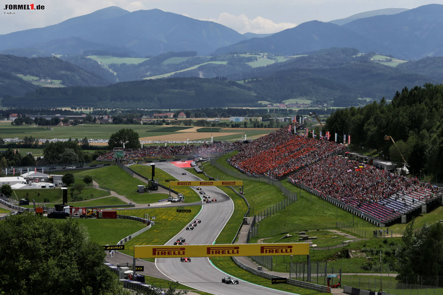 Eine herbe Enttäuschung war der Rennsonntag in Österreich für zehntausende Max-Verstappen-Fans aus den Niederlanden, die die Tribüne zwischen erster und zweiter Kurve komplett in Orange eingefärbt hatten. Der Red-Bull-Pilot wurde am Start Opfer einer Kettenreaktion, als ihn Fernando Alonso (McLaren) umdrehte. Der Spanier konnte aber selbst nichts für den Zwischenfall, sondern wurde seinerseits von einem übermotivierten Daniil Kwjat (16./Toro Rosso) von hinten getroffen.
