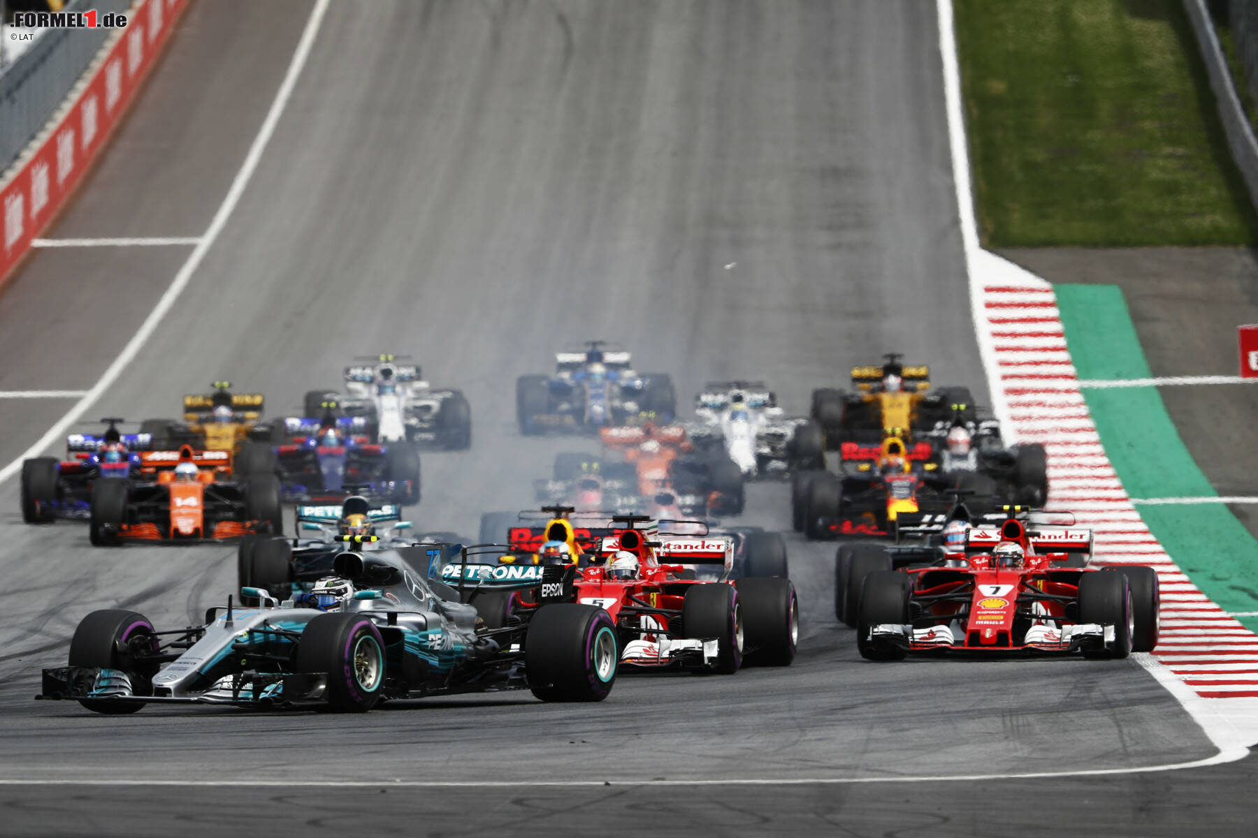 Start zum Grand Prix von Österreich 2017: Vorne hat Valtteri Bottas einen Traumstart, hinten macht Fernando Alonso viele Positionen gut.