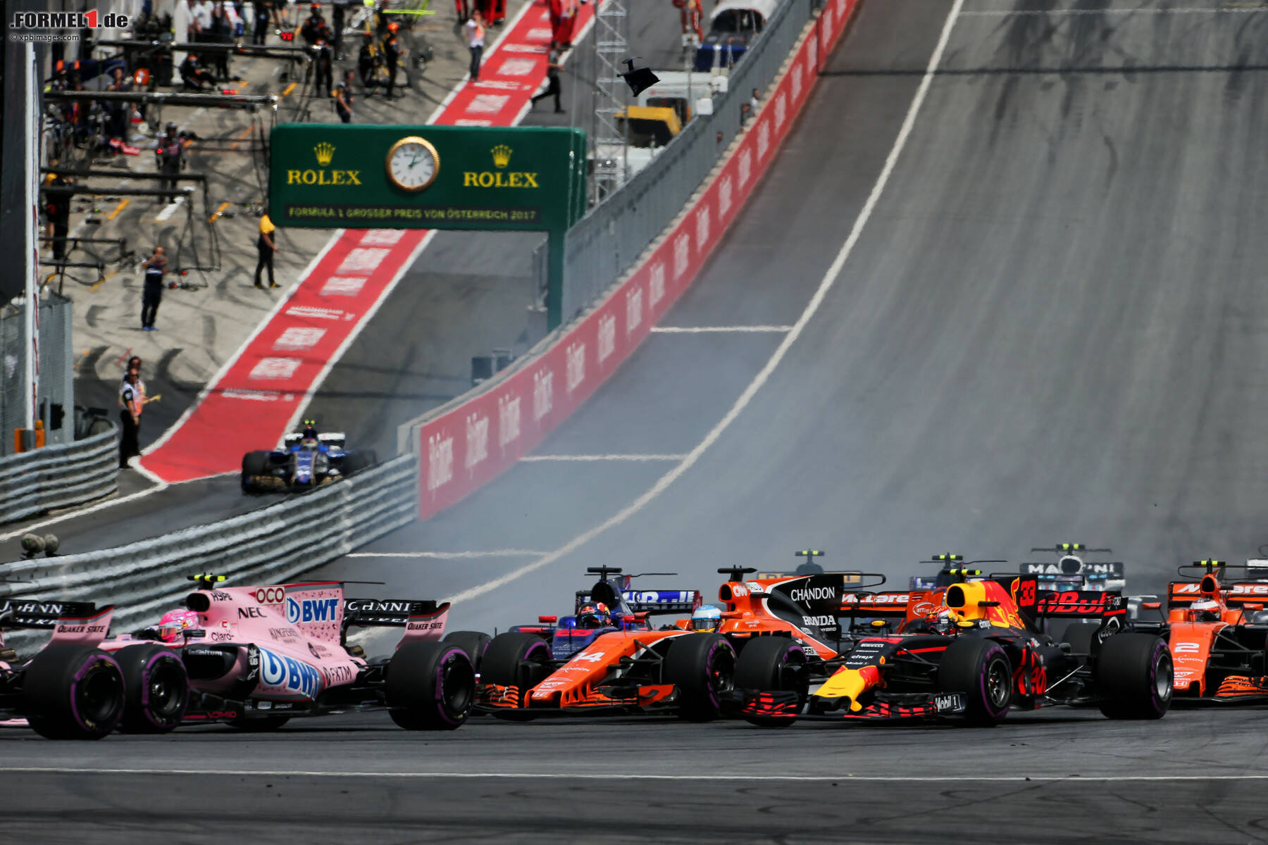 "Dann war nichts mehr zu kontrollieren, weil ich über alle vier Räder gerutscht bin. Leider war dann dort das andere Auto im Weg, dem ich nicht mehr ausweichen konnte", sagt Kwjat. "Da kam halt von hinten einer zu schnell an", so die Perspektive von Alonso. "Ich wurde dann getroffen. Leider musste ich aussteigen. Das ist schade, aber lässt sich nicht ändern. Manchmal riskieren die Jungs dort hinten zu viel." Während der Spanier schulterzuckend ins Motorhome verschwand, trauerte Verstappen nicht nur einem möglicherweise starken Ergebnis beim Red-Bull-Heimspiel nach, sondern litt auch mit den zahlreichen Fans.